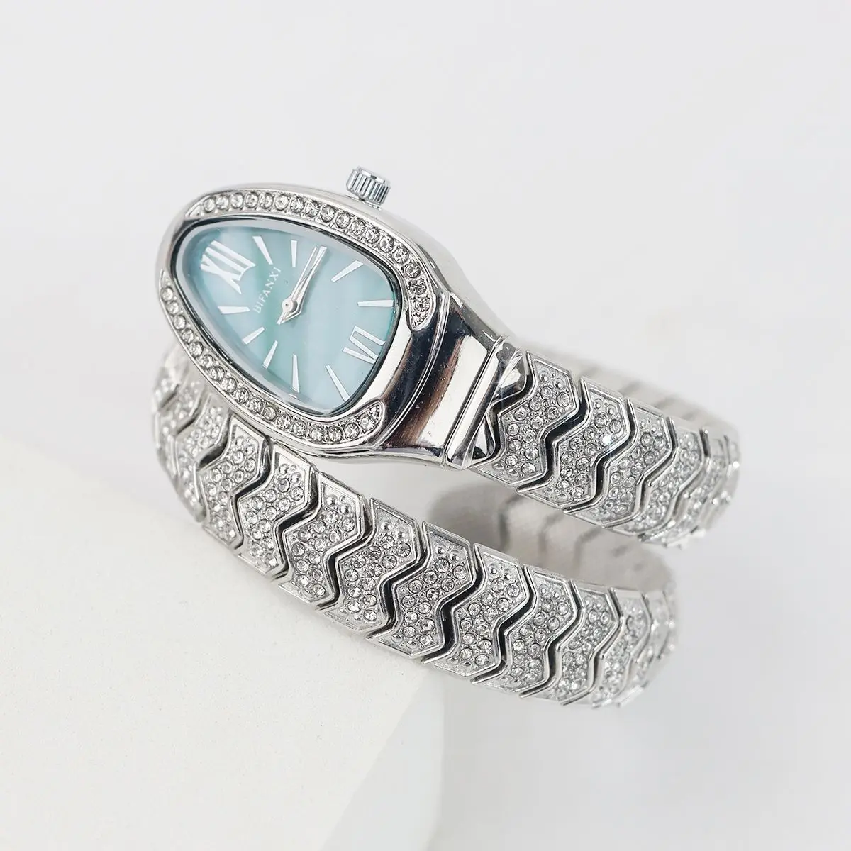 ساعات كوارتز فضية ذهبية للنساء رائجة البيع ساعة فريدة من نوعها مرصعة بالألماس بالكامل للنساء ساعة فاخرة لامعة ساعة Relogio