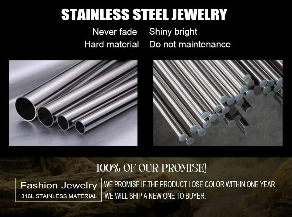 المعدن: فولاذ مقاوم للصدأ 316L لا يبهت لونه أبدًا (قلادة مصنوعة من الفولاذ المقاوم للصدأ، وليست مطلية فقط، لذلك لا داعي للقلق بشأن فقدان لونها).