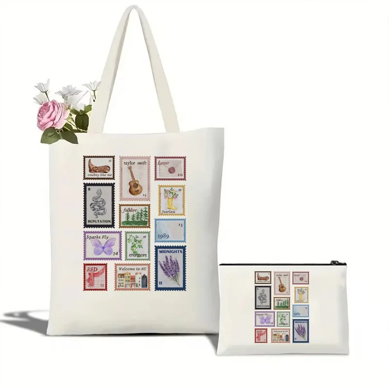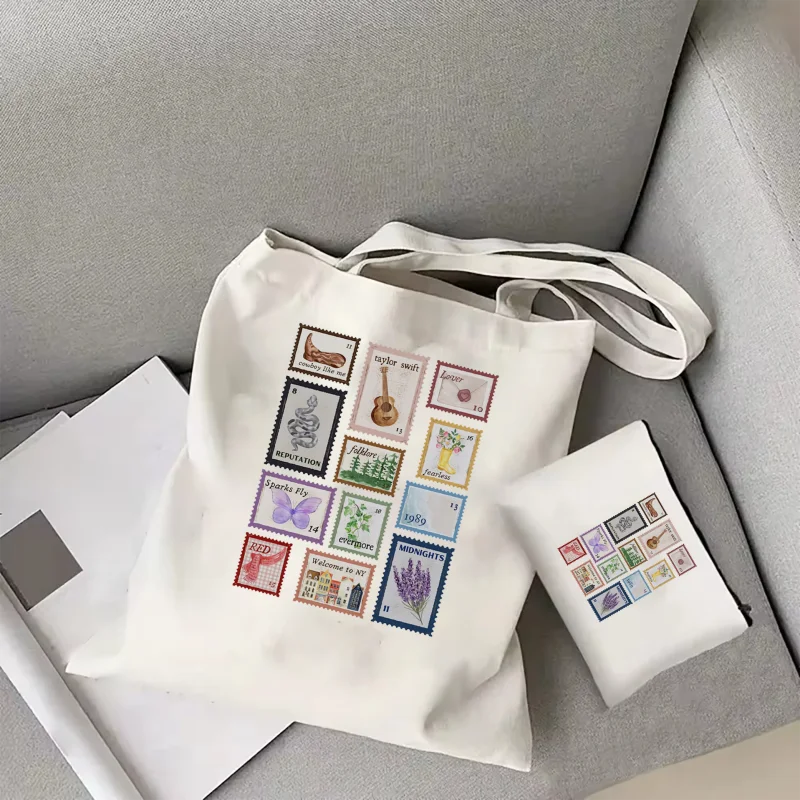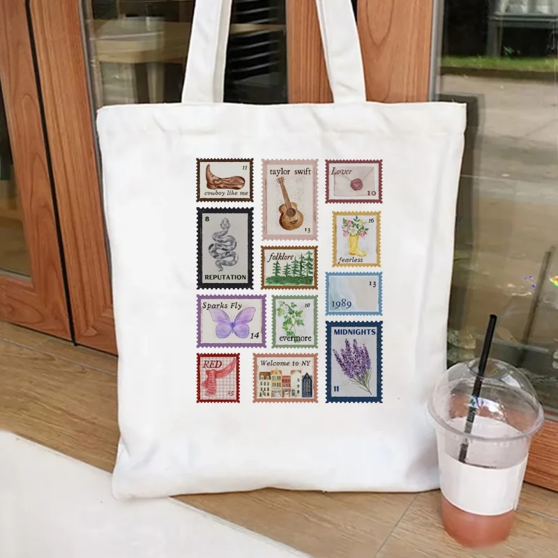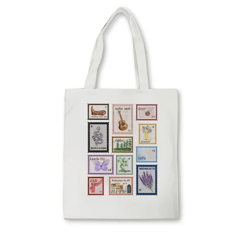 حقيبة تسوق نسائية من Taylor Music Albums Stamps بتصميم جمالي أنيق حقيبة كتف موسيقية Taylor Album Inspiration طوابع بريدية