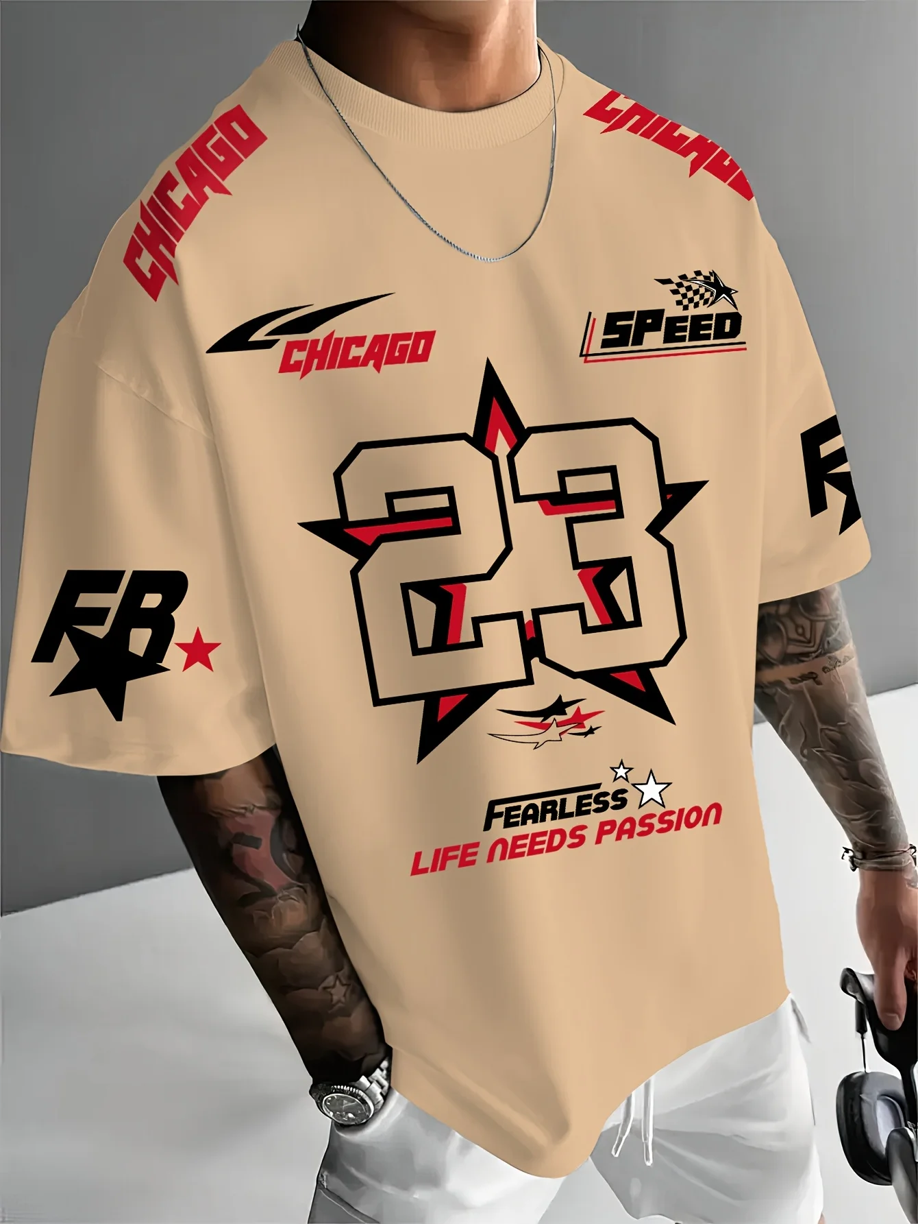 تيشيرت رياضي رجالي جديد لصيف 2025، قميص شيكاغو رقم 23 مطبوع رقميًا، تيشيرت رياضي رجالي كاجوال