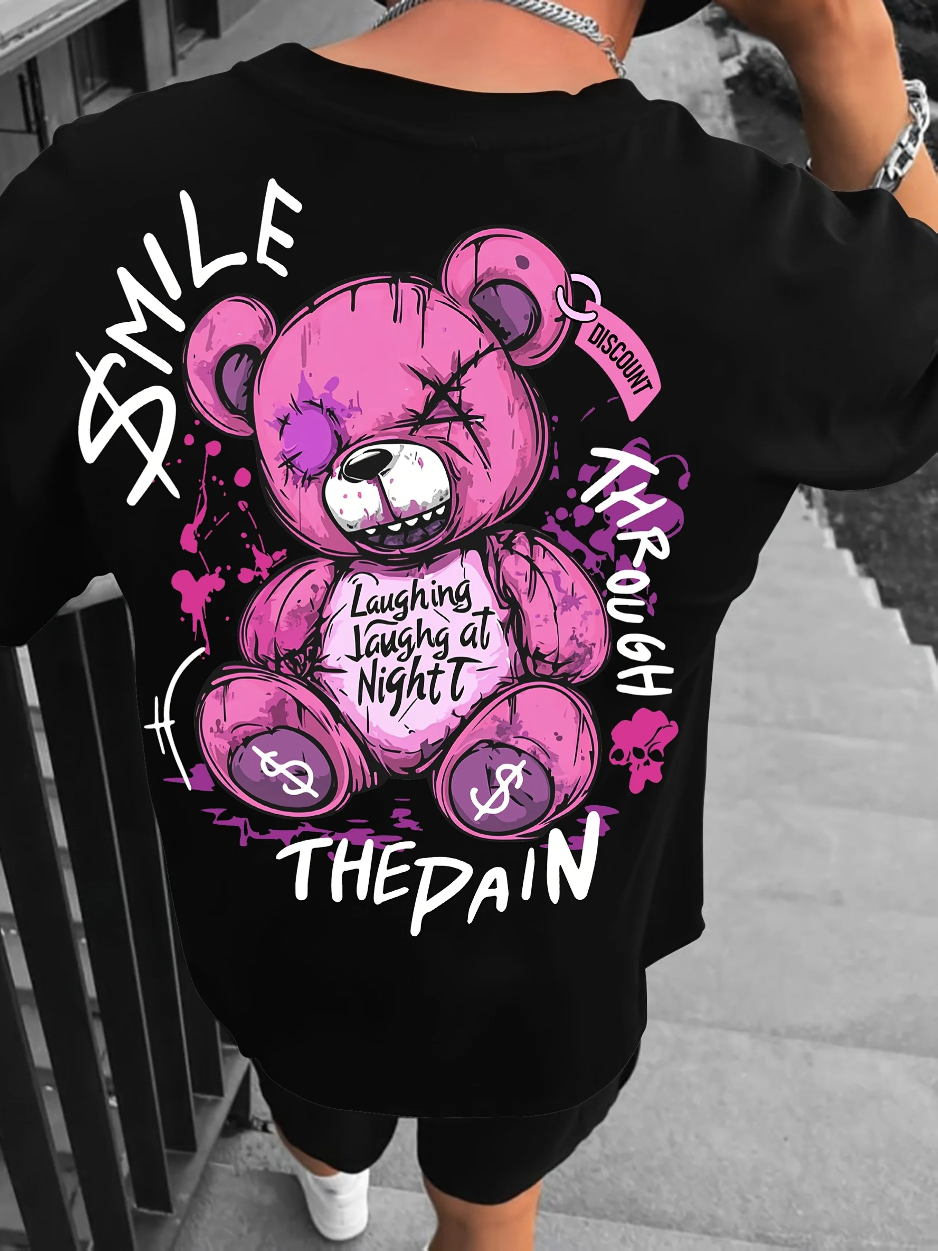 تيشيرت رجالي صيفي جديد بتصميم عصري، مطبوع عليه حروف على شكل دب تيدي، مريح وجيد التهوية، بياقة دائرية، مناسب للارتداء في الهواء الطلق.