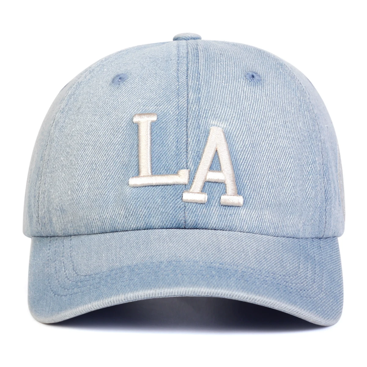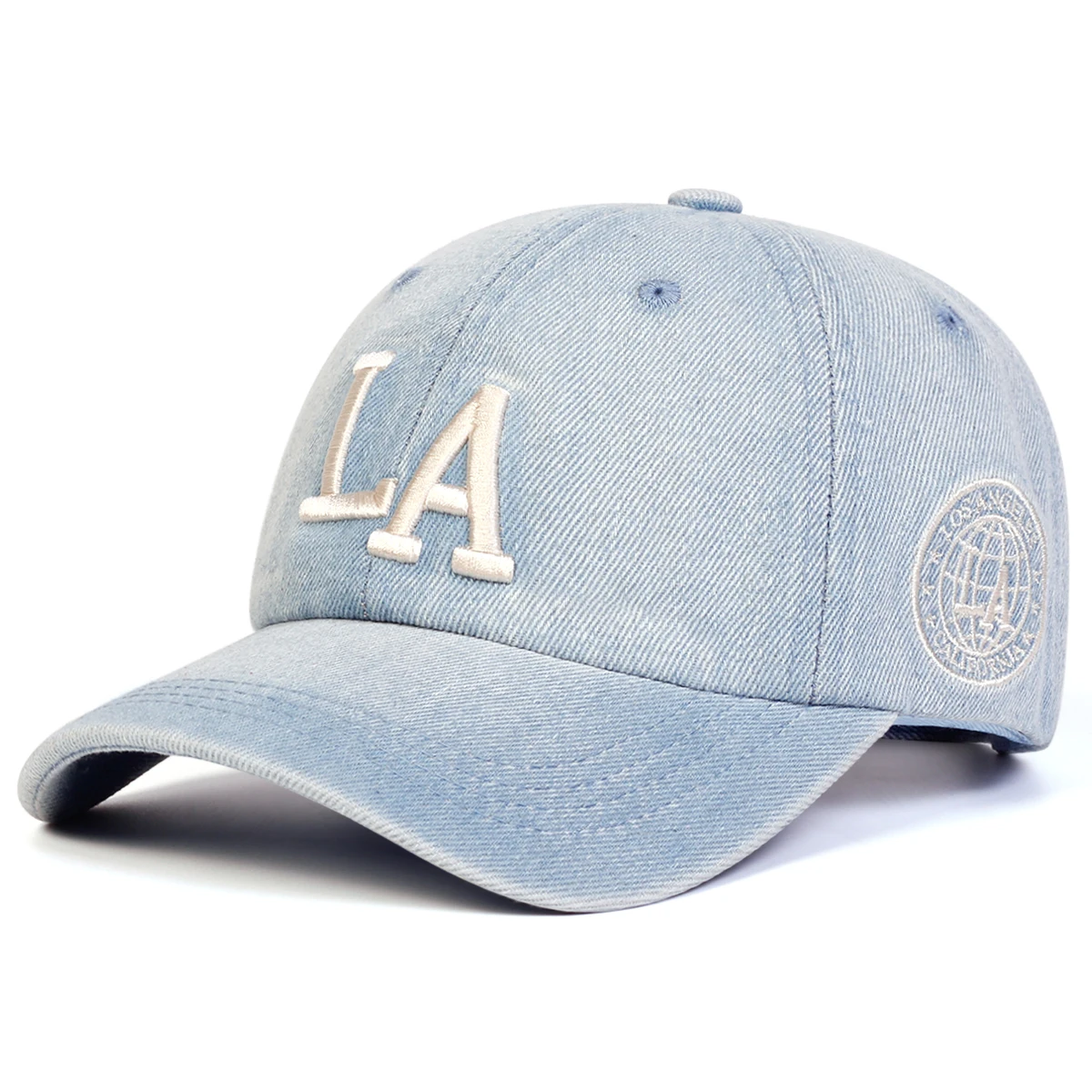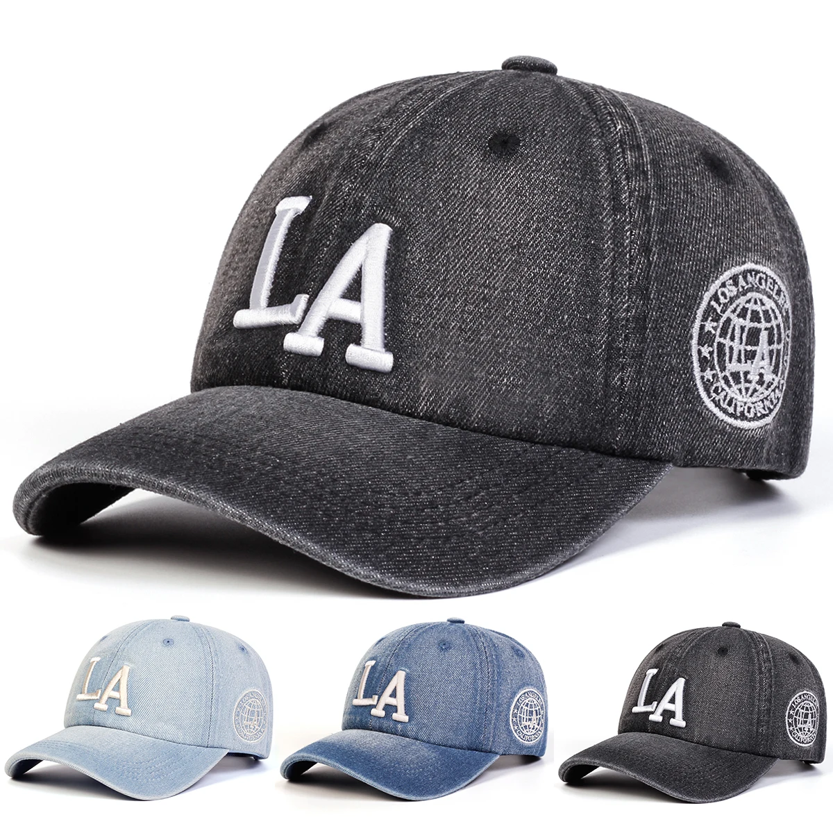 قبعات بيسبول للجنسين من قماش الدنيم المغسول المطرز بحرف LA للربيع والخريف، قبعات كاجوال قابلة للتعديل، قبعة واقية من الشمس، قبعة رياضية