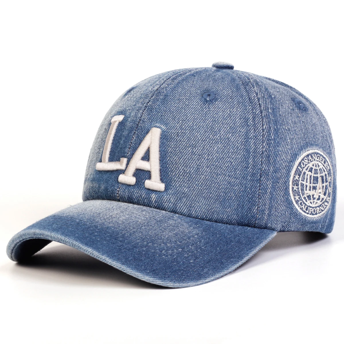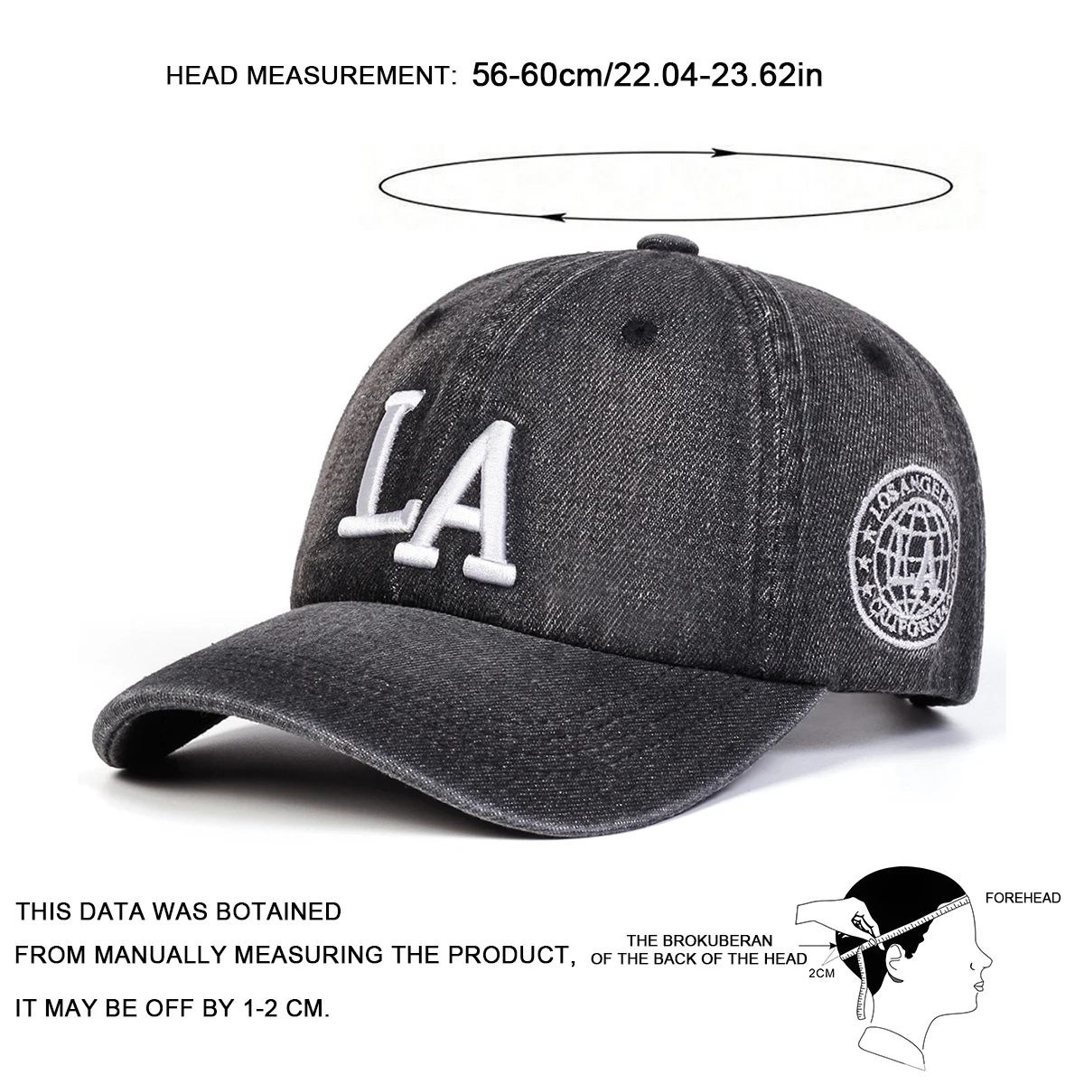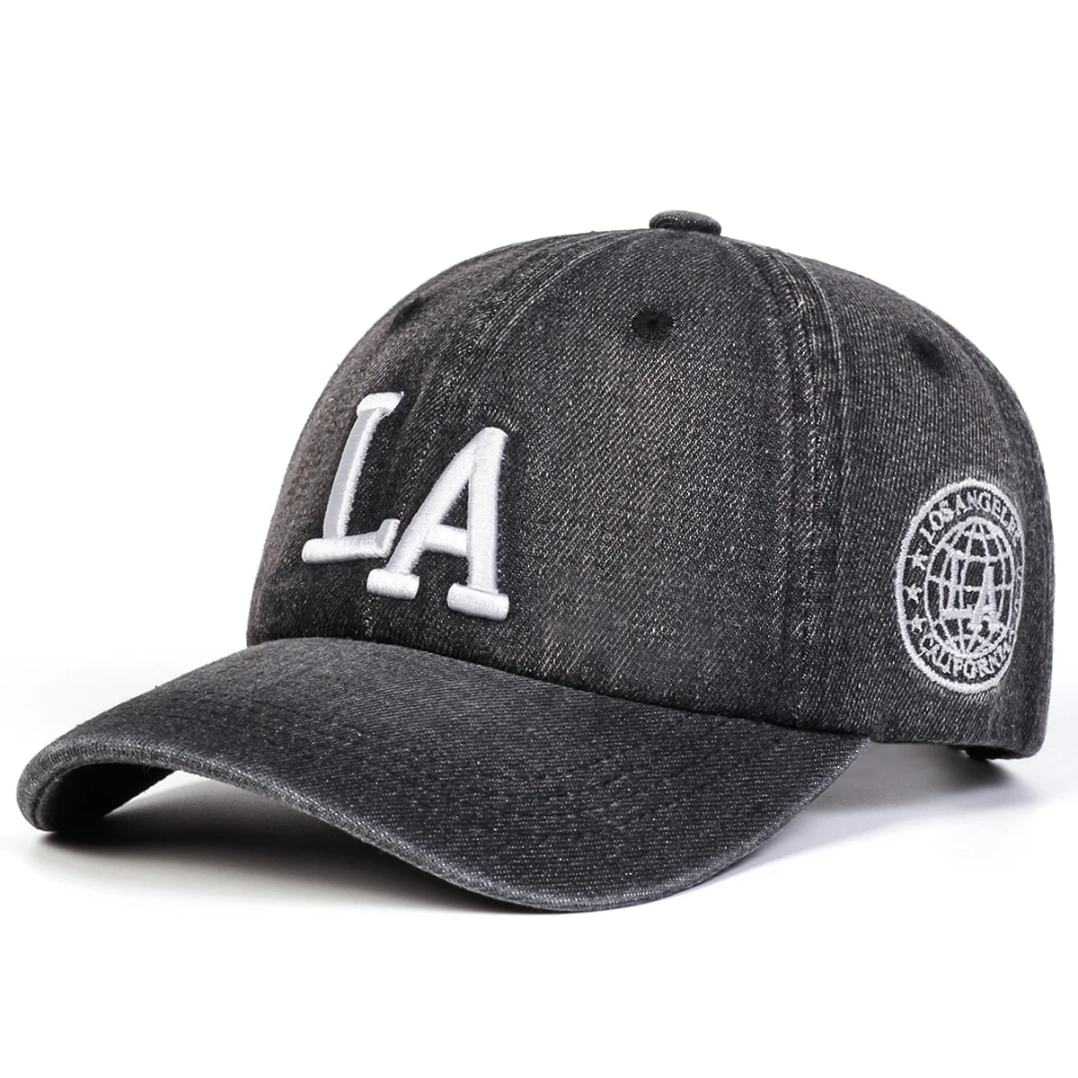 قبعات بيسبول للجنسين من قماش الدنيم المغسول المطرز بحرف LA للربيع والخريف، قبعات كاجوال قابلة للتعديل، قبعة واقية من الشمس، قبعة رياضية