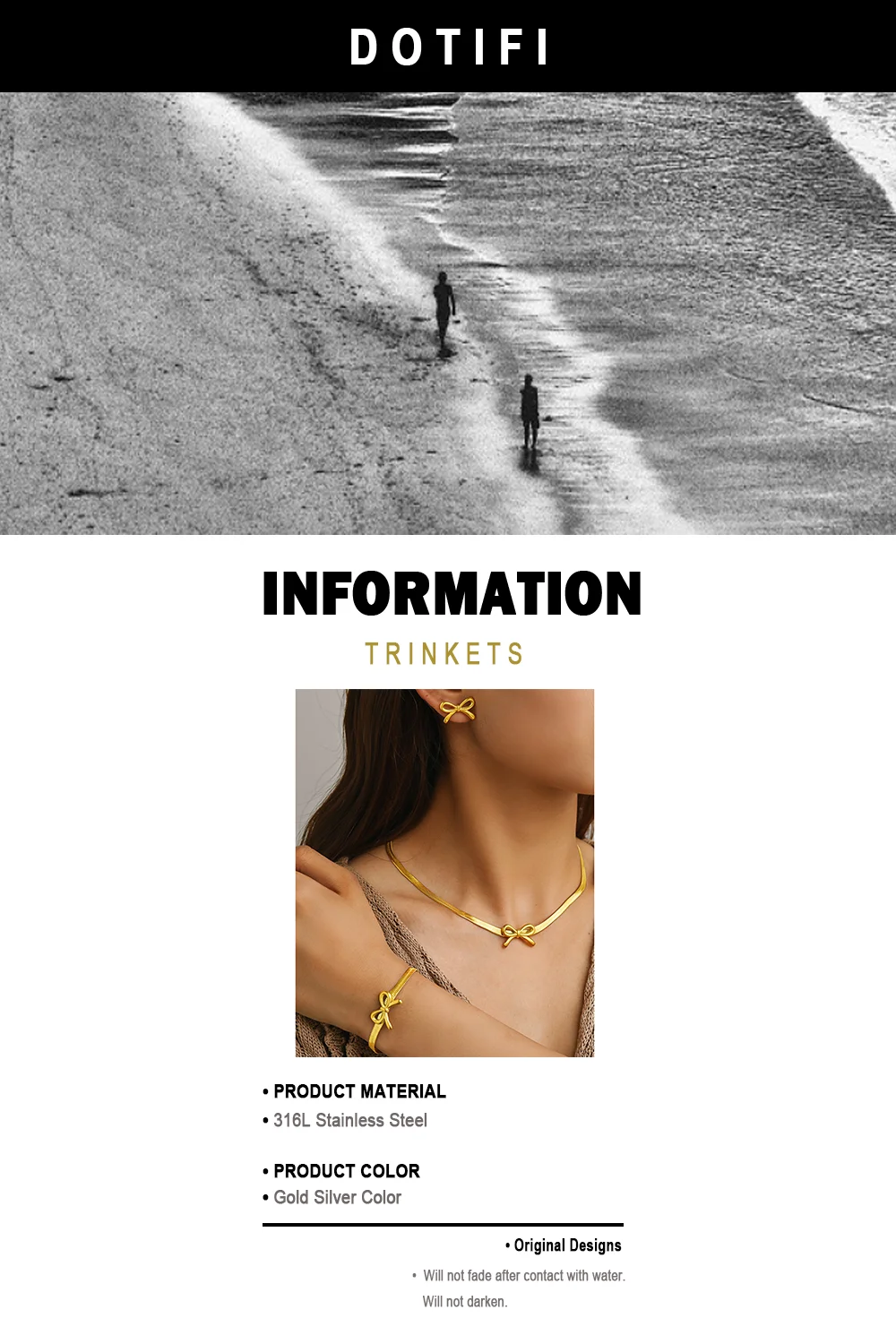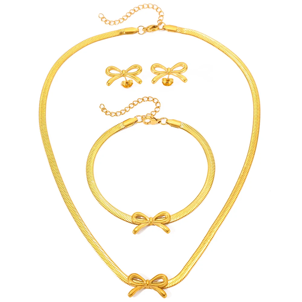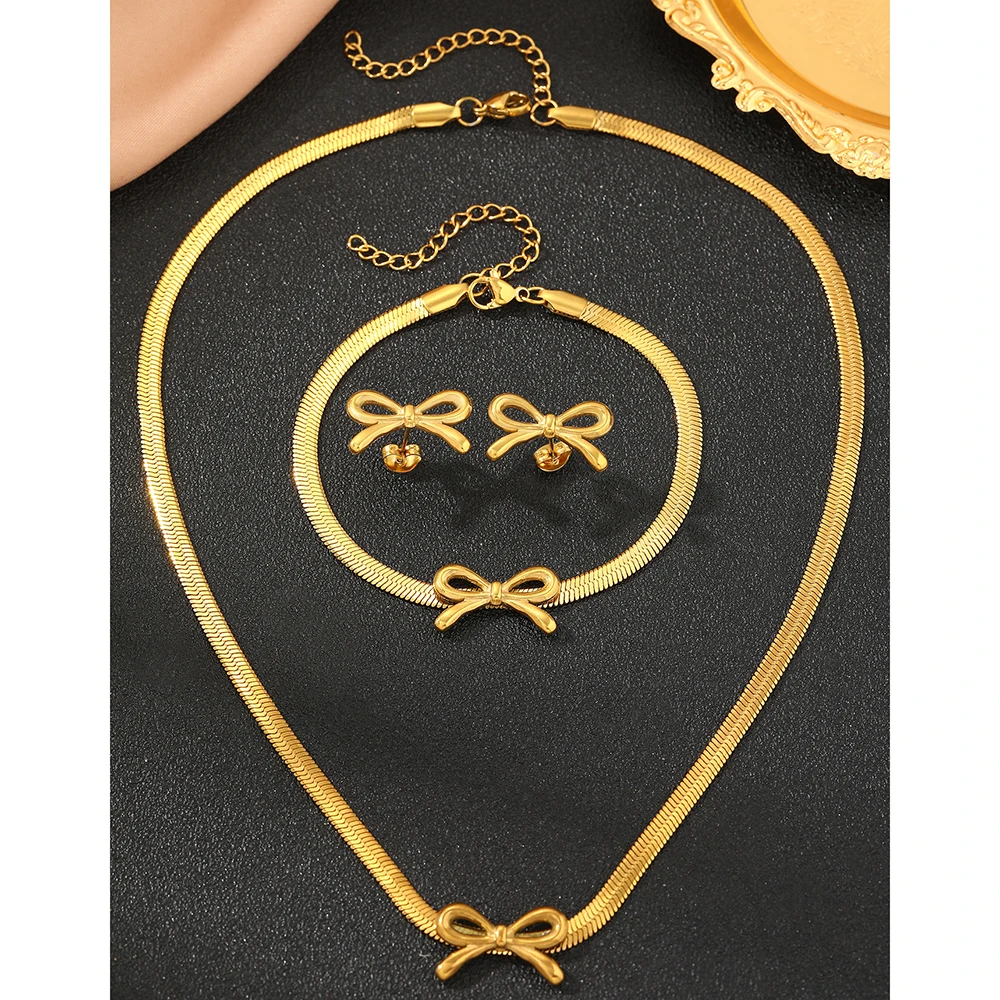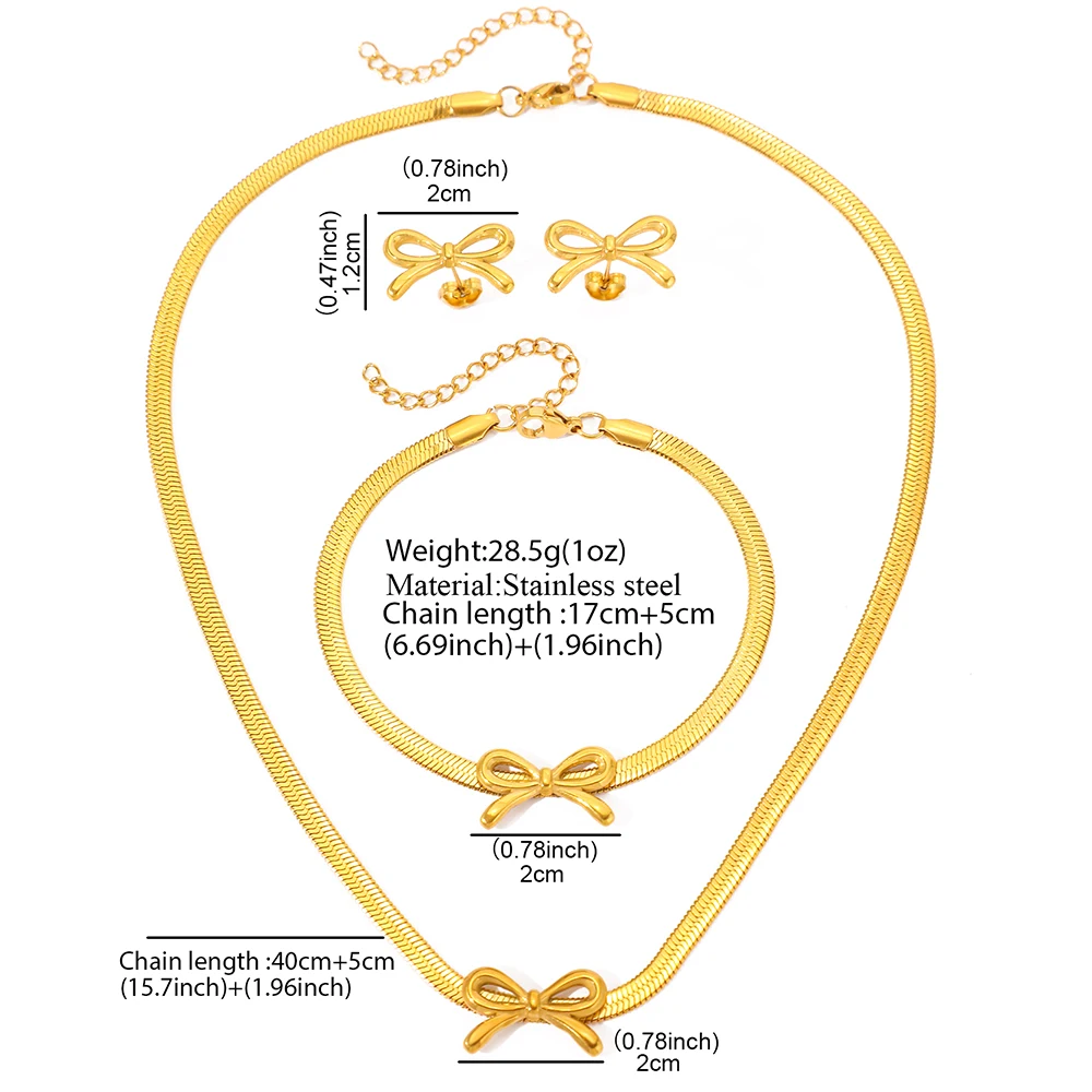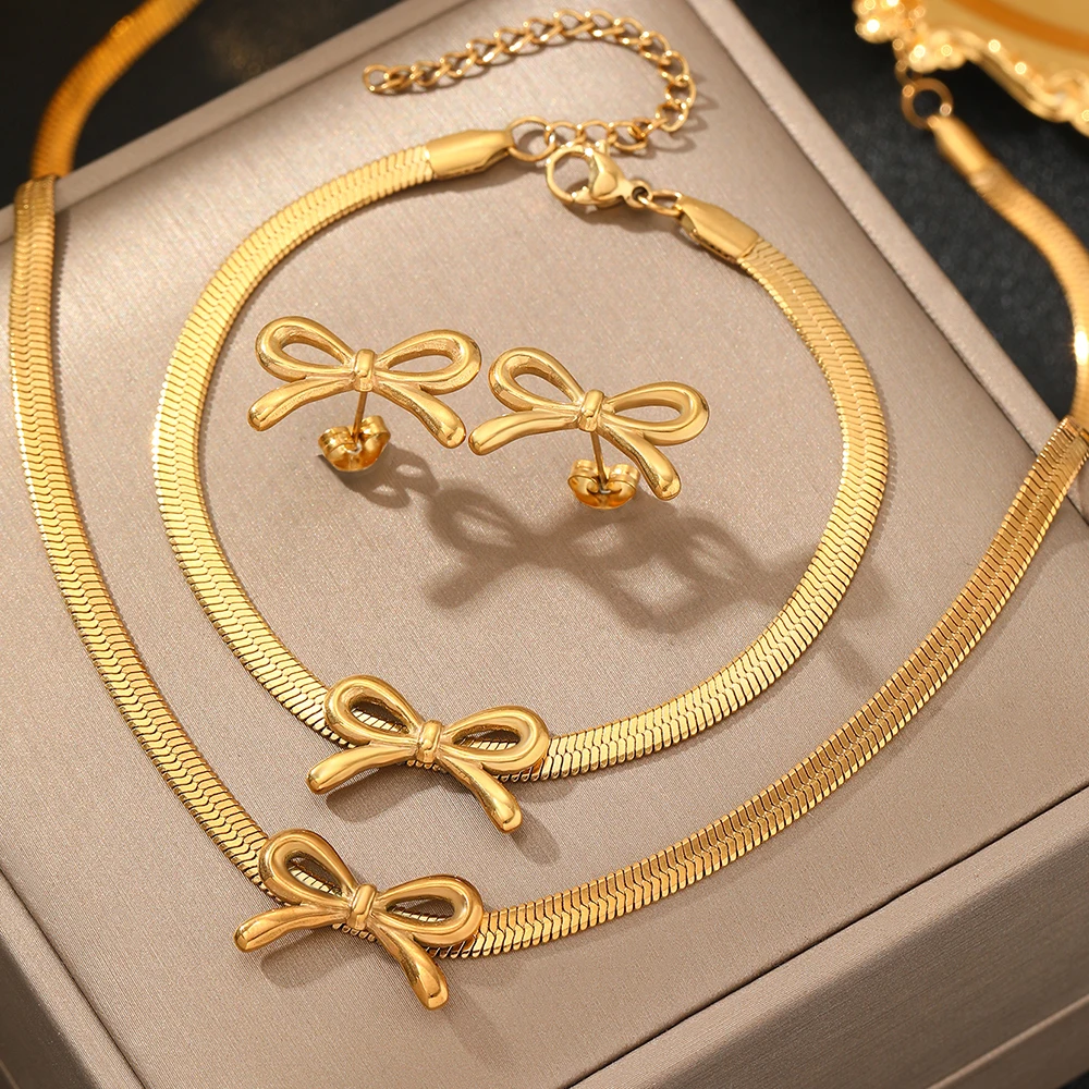 طقم مجوهرات من الفولاذ المقاوم للصدأ من وويوي، يتكون من 3 قطع: سوار، قلادة، وأقراط، وسلسلة، بتصميم فيونكة، هدية مثالية للنساء.