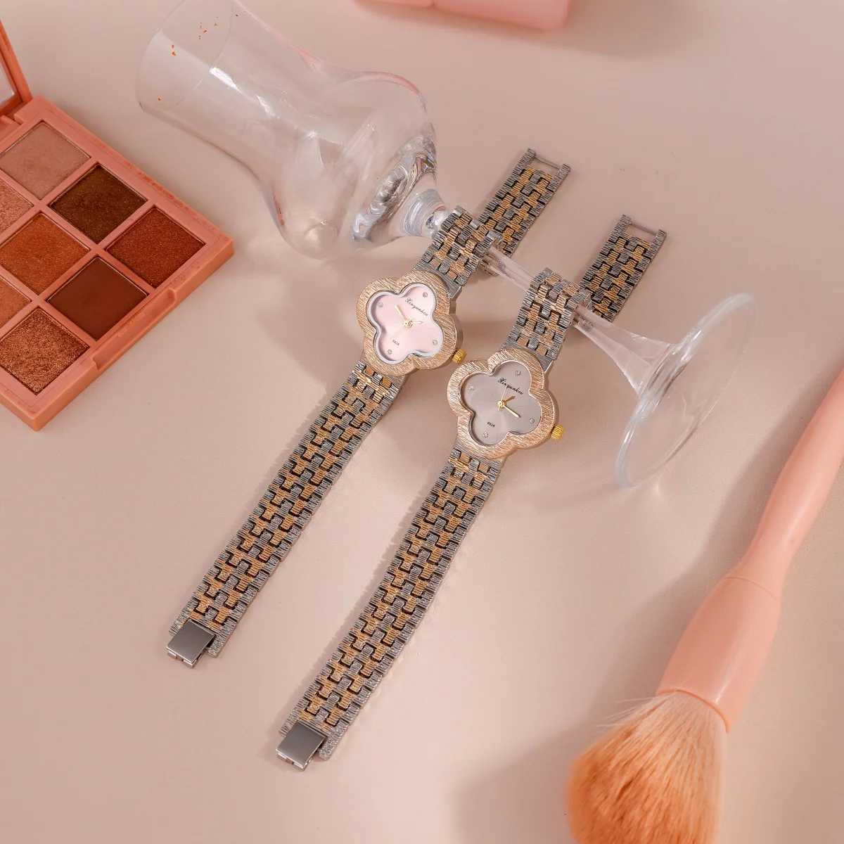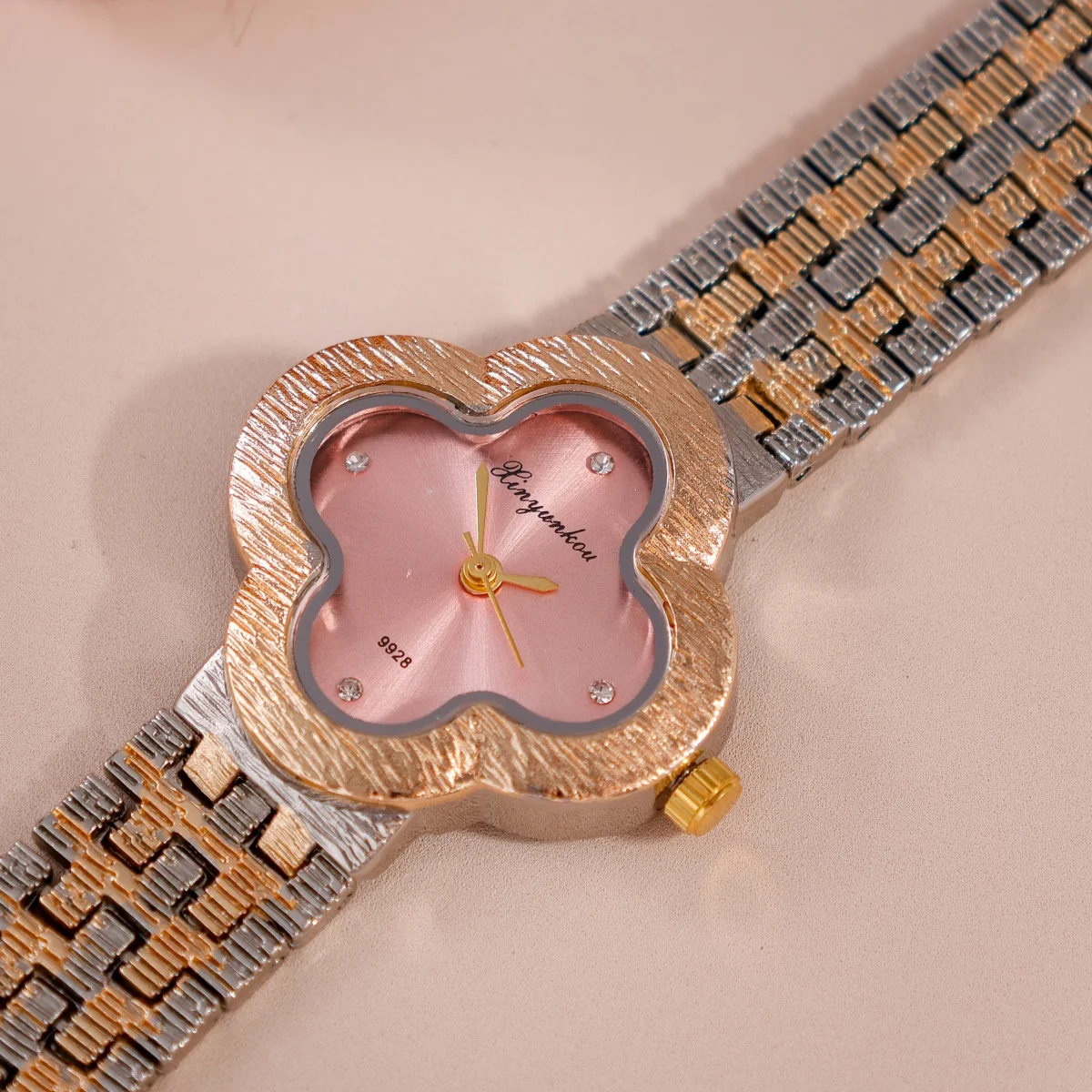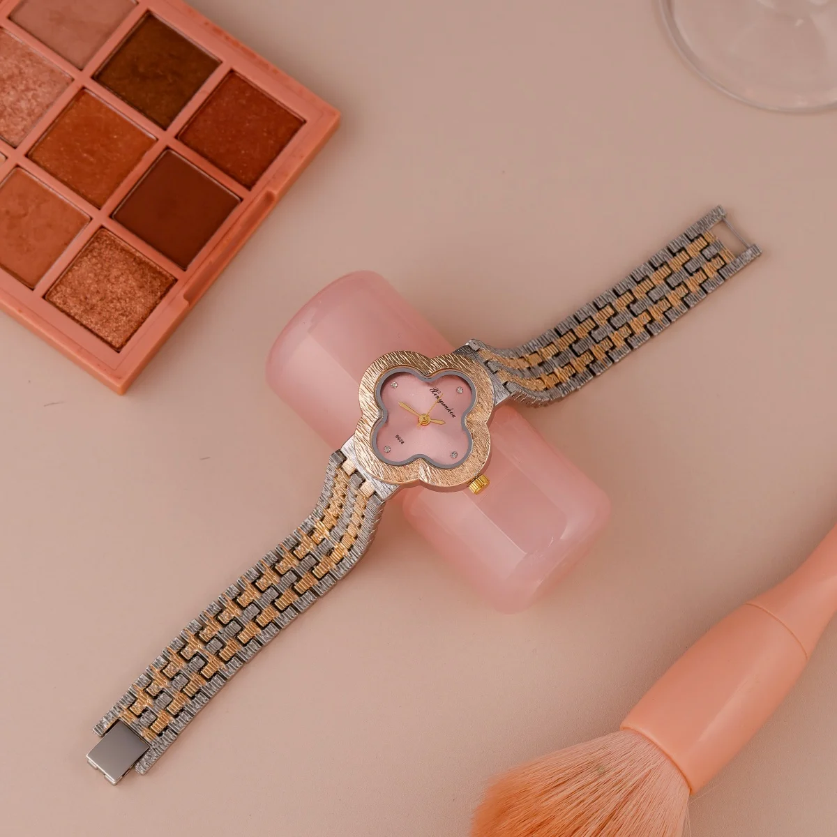 سوار أنيق وعصري من الذهب الوردي والفولاذ، مصنوع من الكوارتز، للنساء