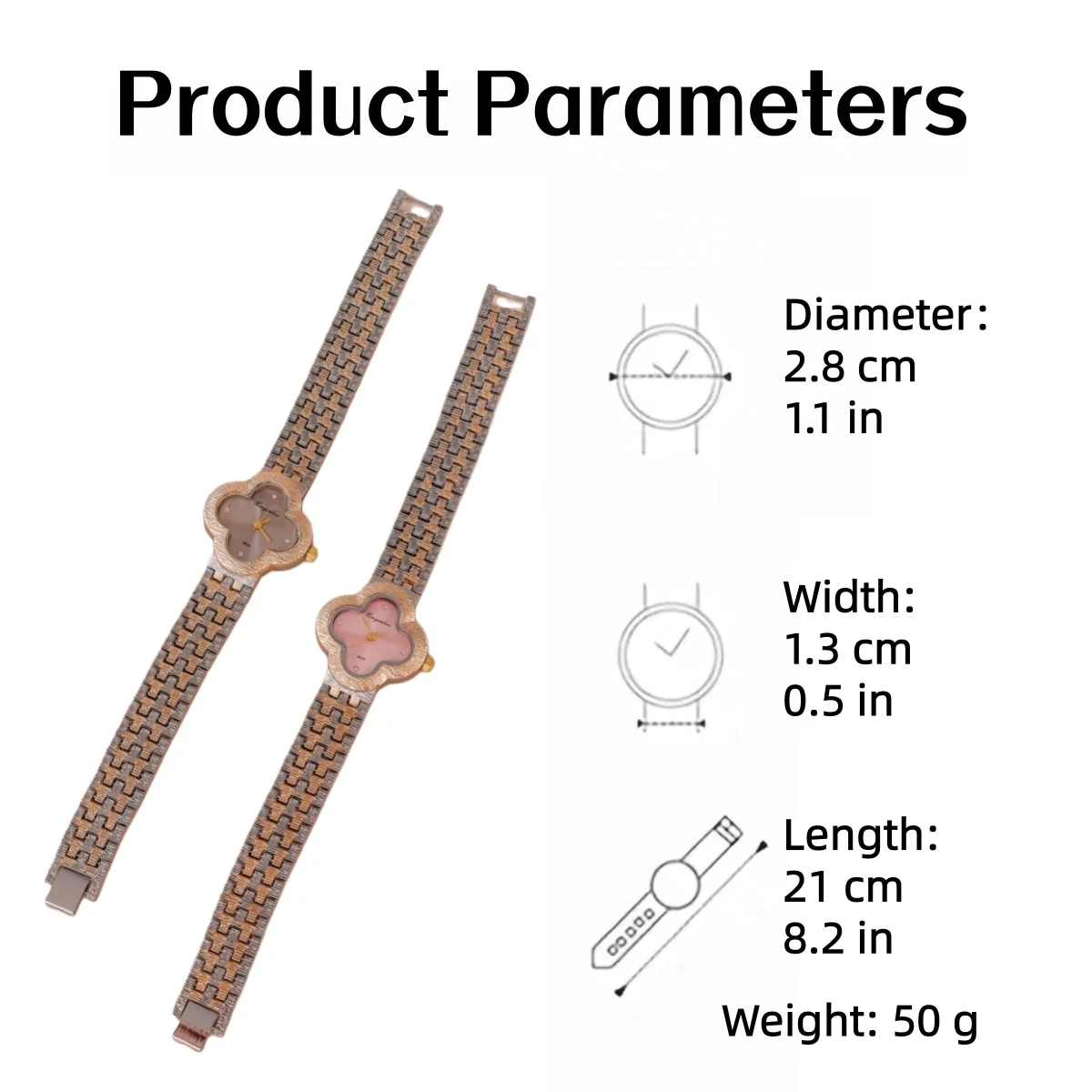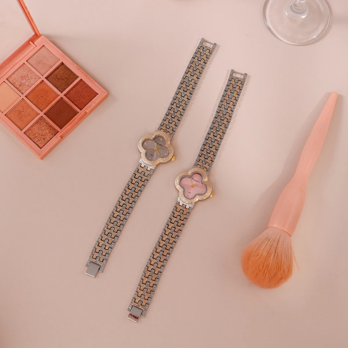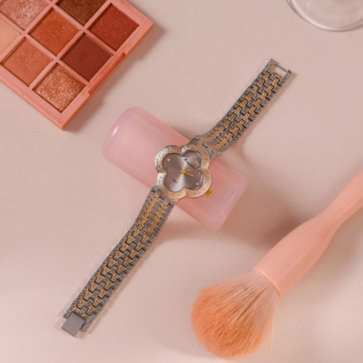 سوار أنيق وعصري من الذهب الوردي والفولاذ، مصنوع من الكوارتز، للنساء