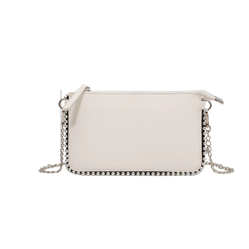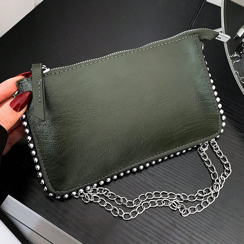حقيبة كروس أنيقة ورائعة بتصميم سلسلة خرز كلاسيكية ريترو للنساء، حقيبة تنقل بلون سادة.