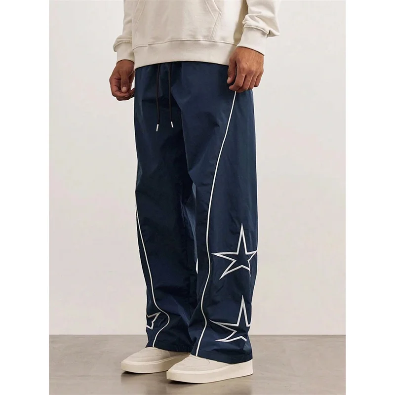 Featuring a unique embroidered design and a loose, wide-leg cut, these pants add a touch of style to any casual outfit.