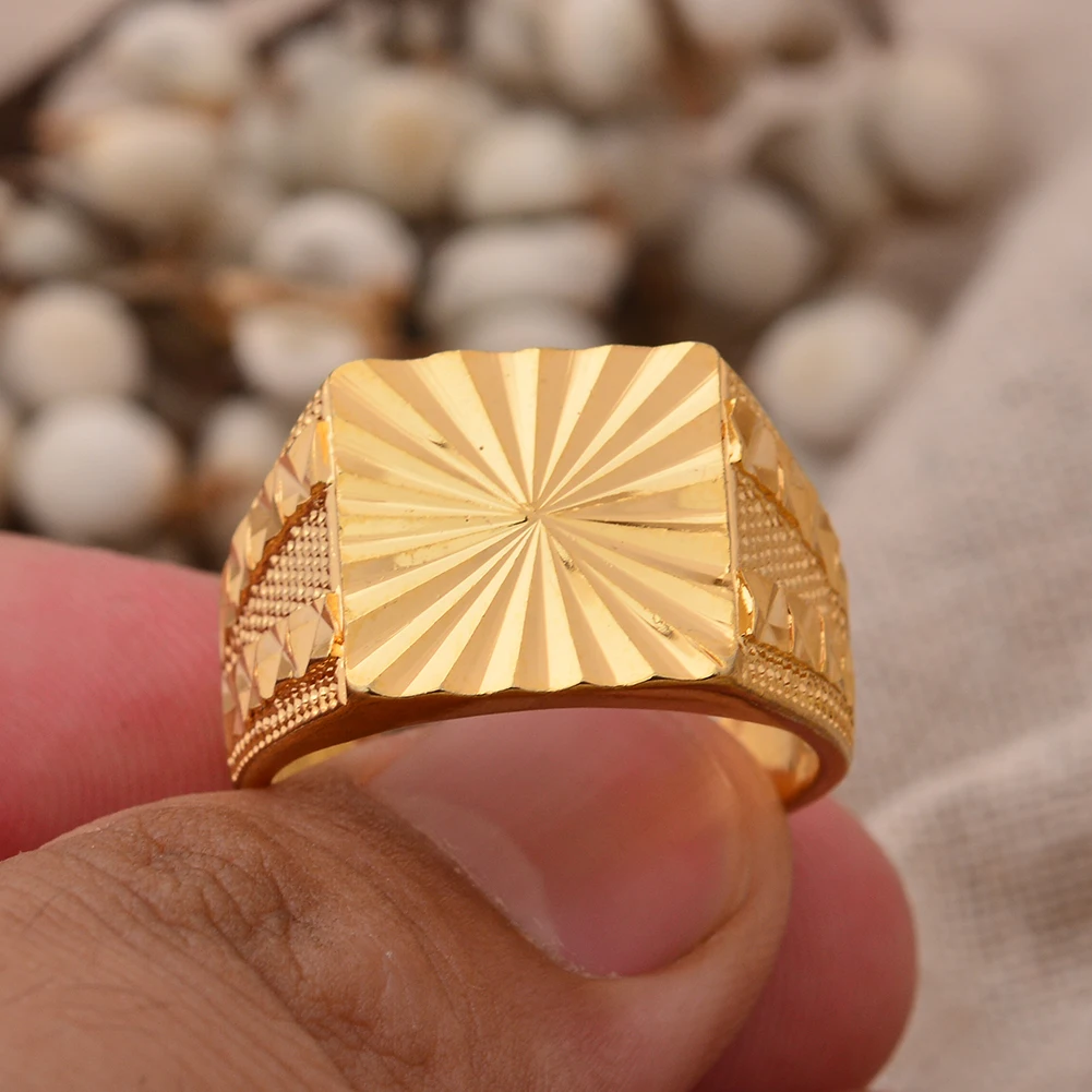 24k Dubai Gold Color Rings For Women Man  Bijoux Africaine Dubai Jewelry Saudi Arabia Ring Party Gifts