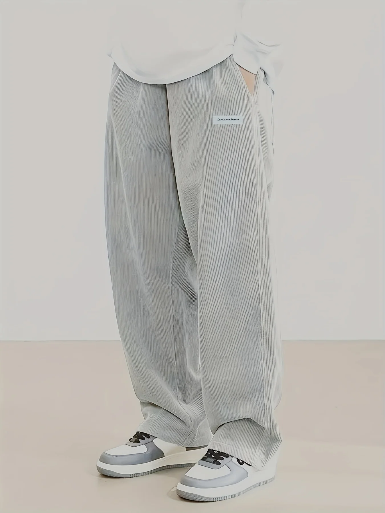 Autumn Mens Corduroy Casual Pants Fashion Loose Fit Pants Straight Sweatpants Elastic Waist Drawstring Outdoor Streetwear