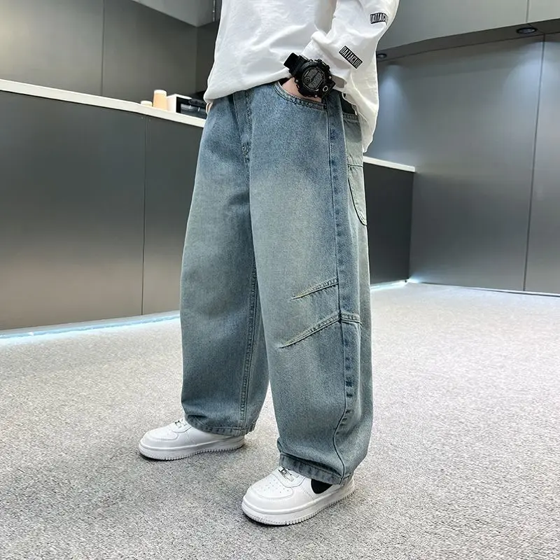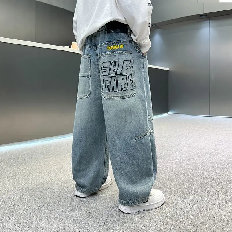 Boys' jeans in spring and autumn, mid to large children's casual pants, handsome and versatile, boys' pants, street style