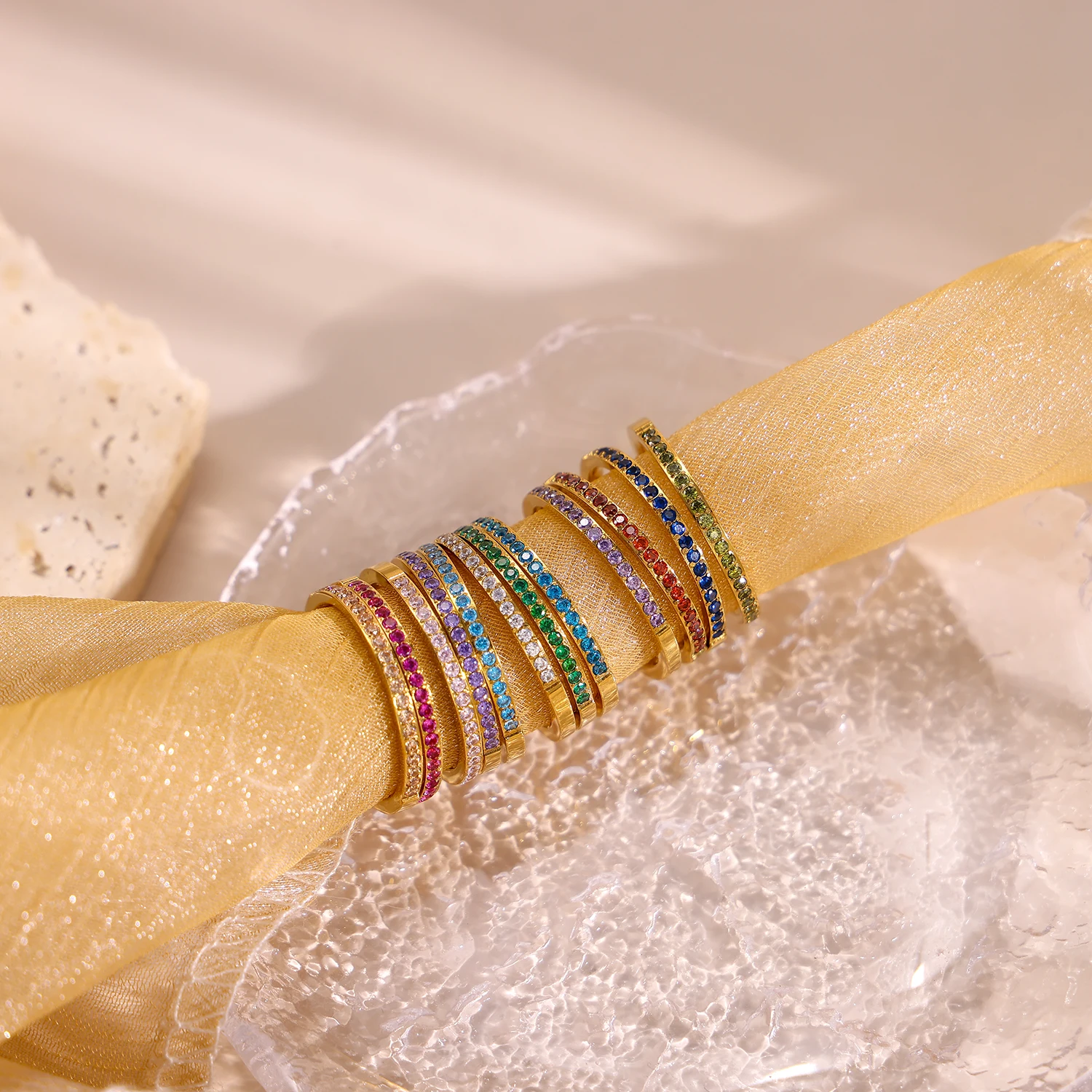 CARLIDANA Mini Zircon 12 Birthstone Rings for Women Stainless Steel Gold Color Finger Ring Engagement Wedding Jewelry Gift