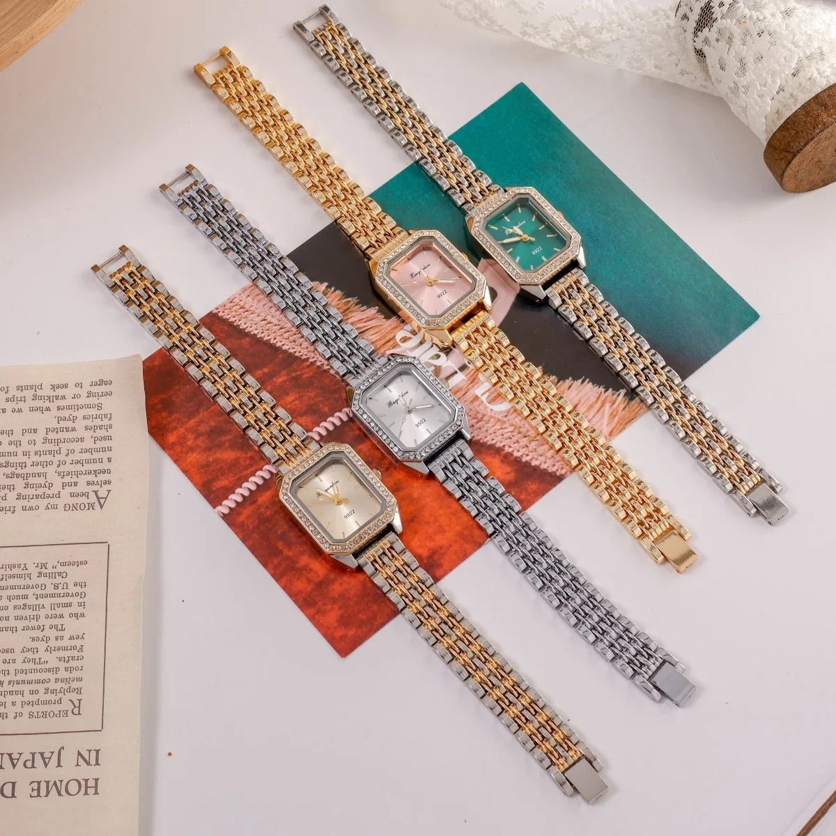 Elegant Women's Quartz Watches Classic Gold and Silver Colors Square Dial Rhinestone-set Bezel Fashion Female Watch Accessories