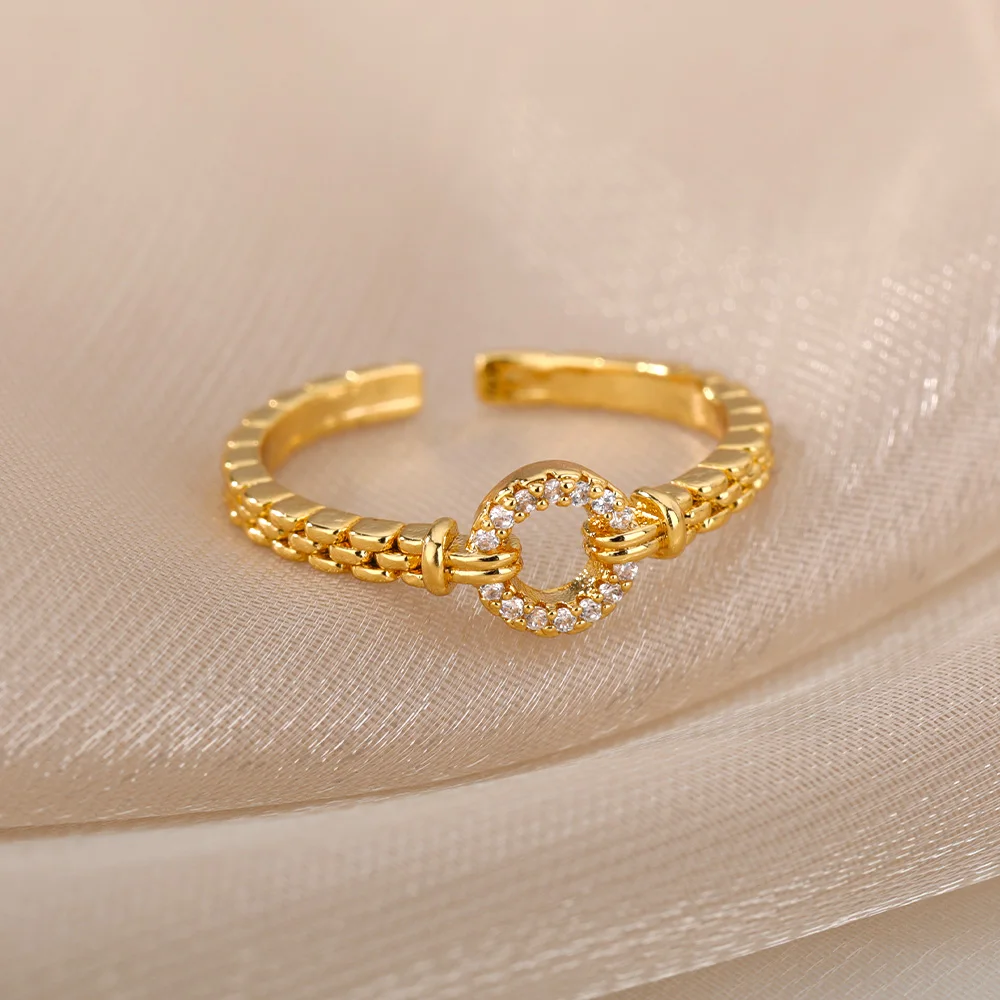 Fashion Chain Hollow Out Rings For Women Gold Color Stainless Steel Zircon Cross Open Ring Trendy Wedding Aesthetic Jewerly Gift