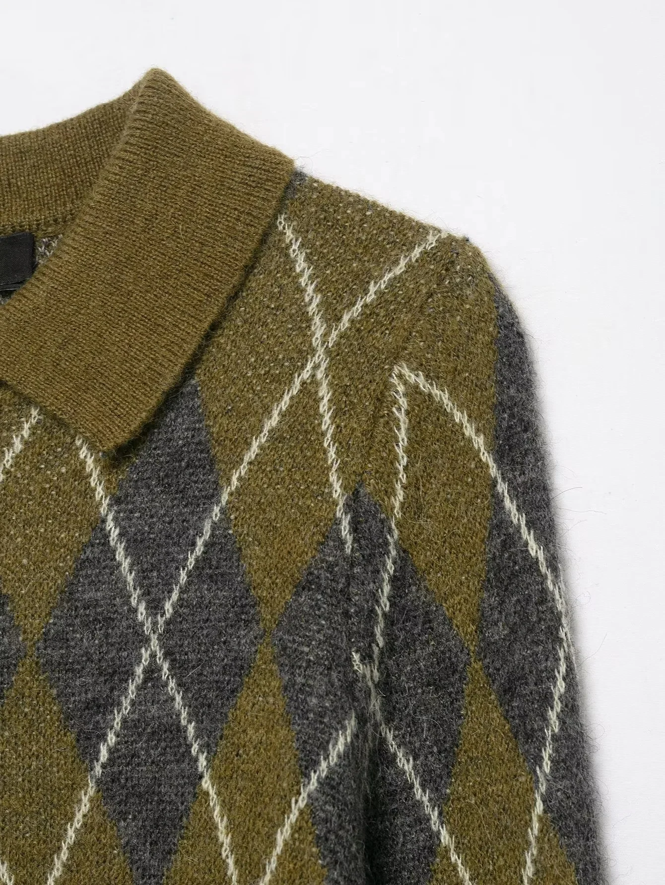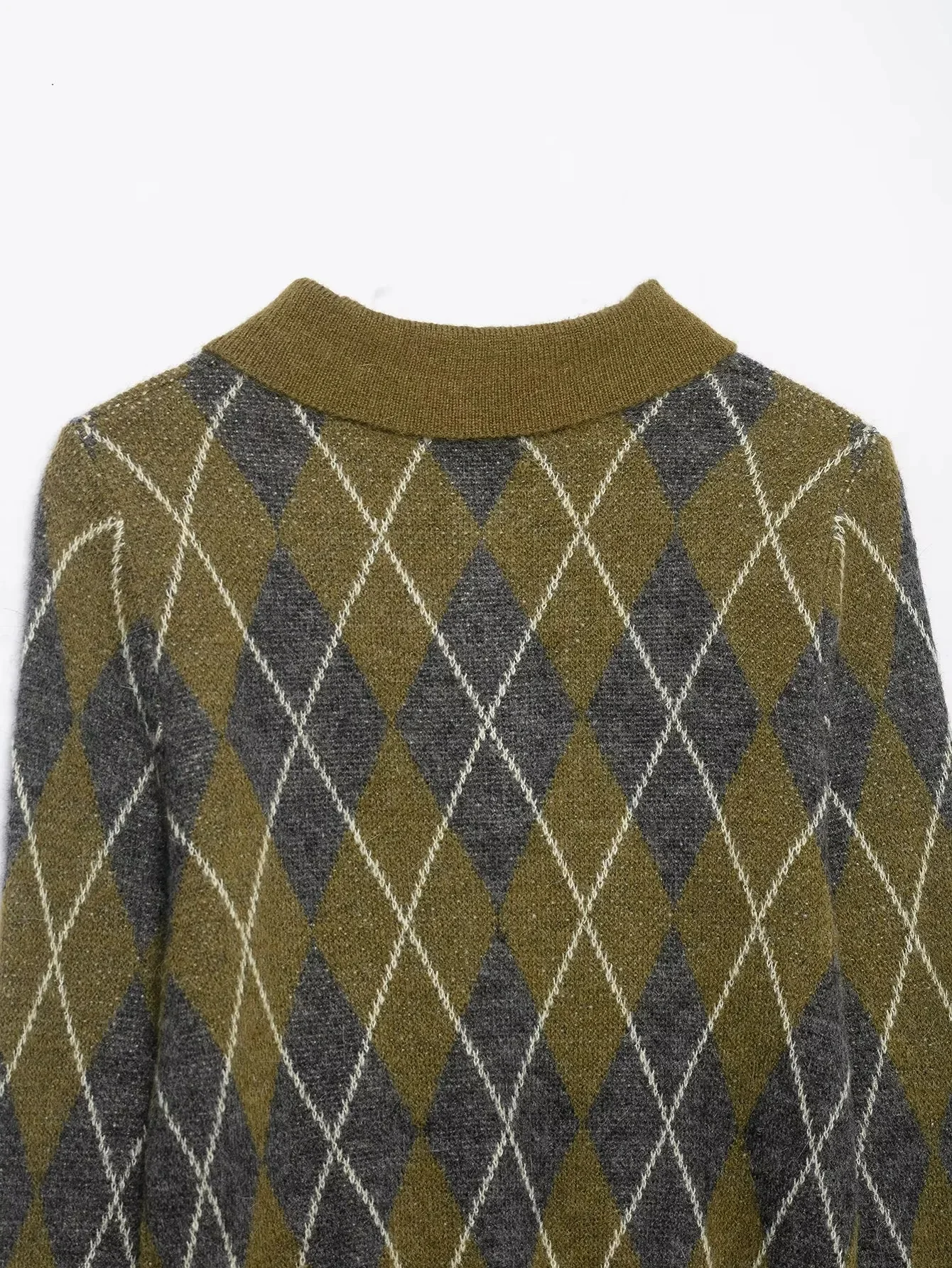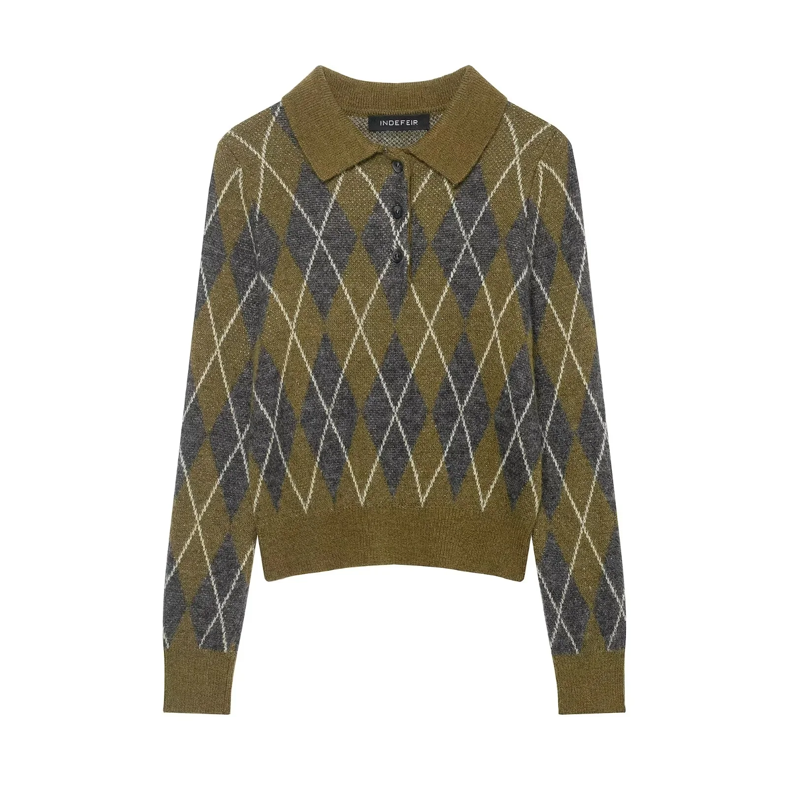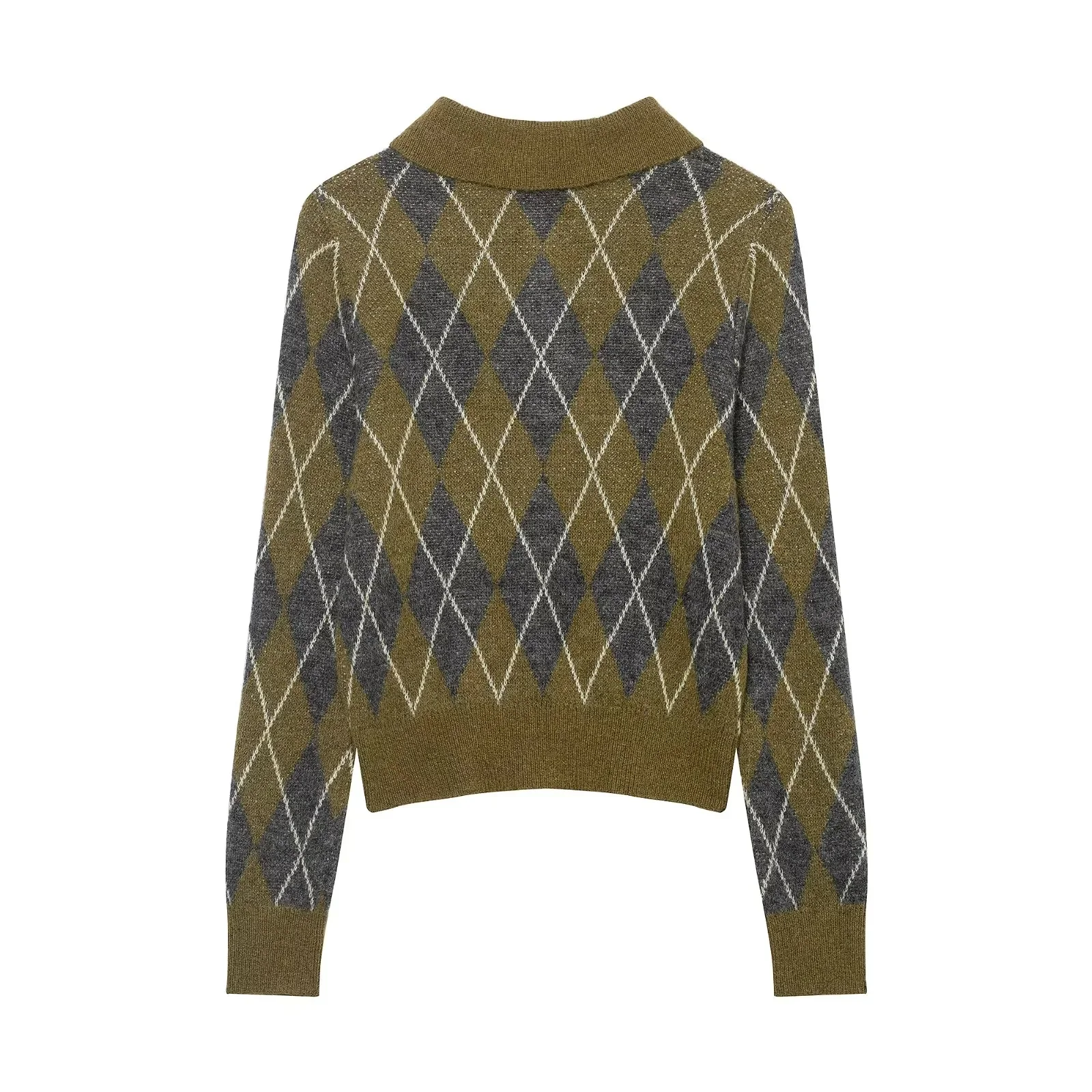 KONDALA 2025 Fall Winter Argyle Streetwear Knitted Women POLO Shirts Fashion Vintage Pullover Turndown Collar Ladies POLO Shirts