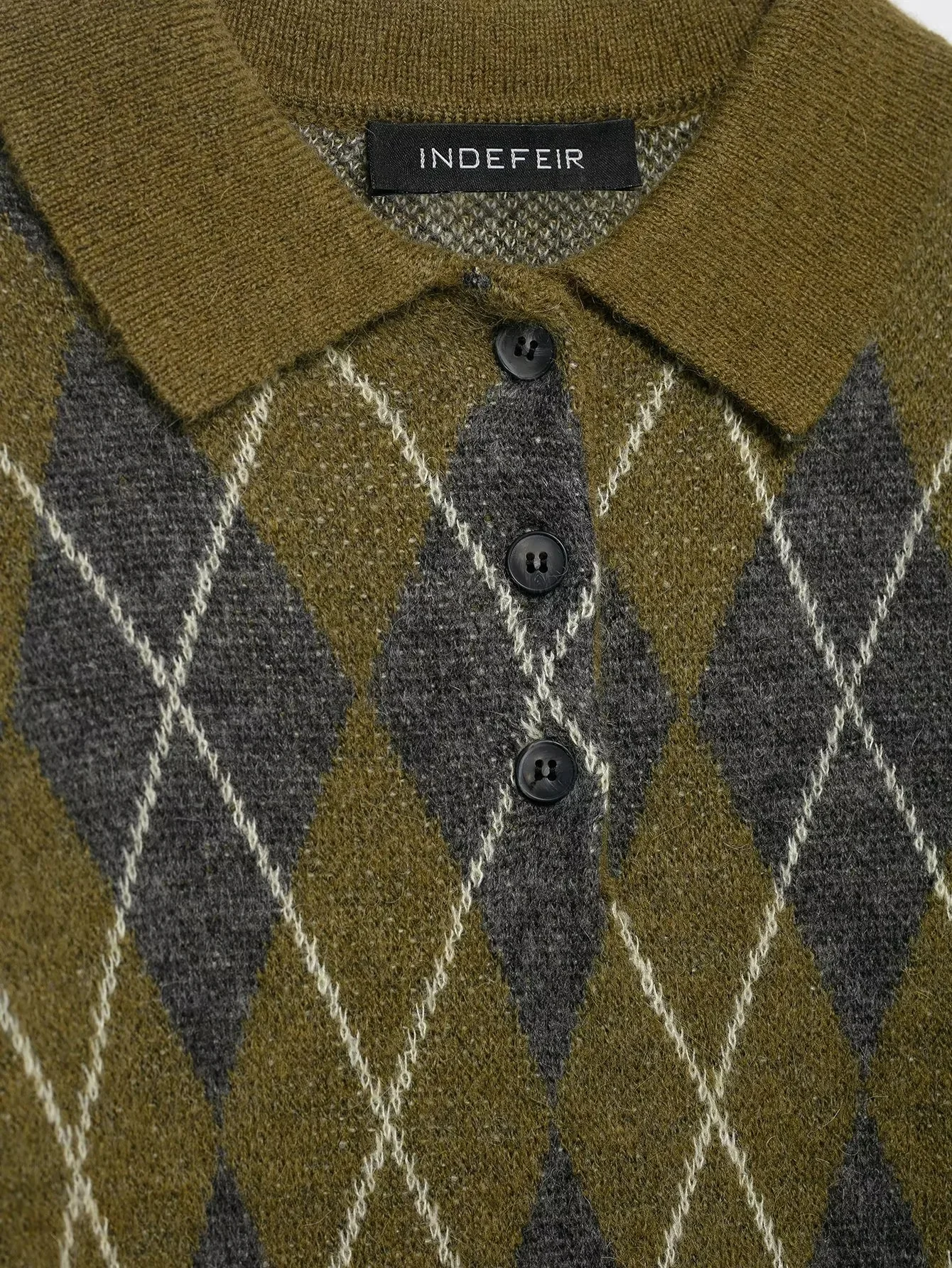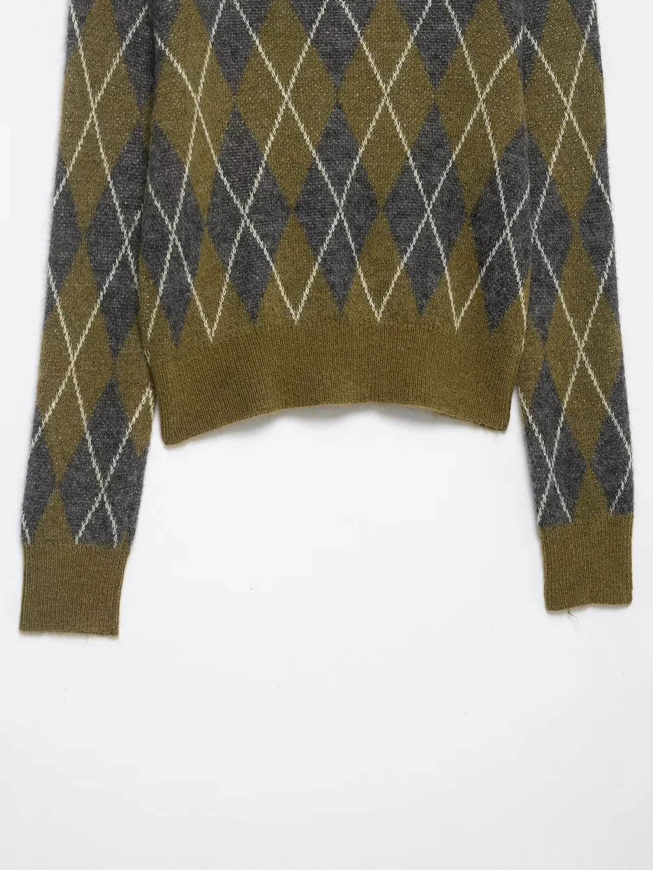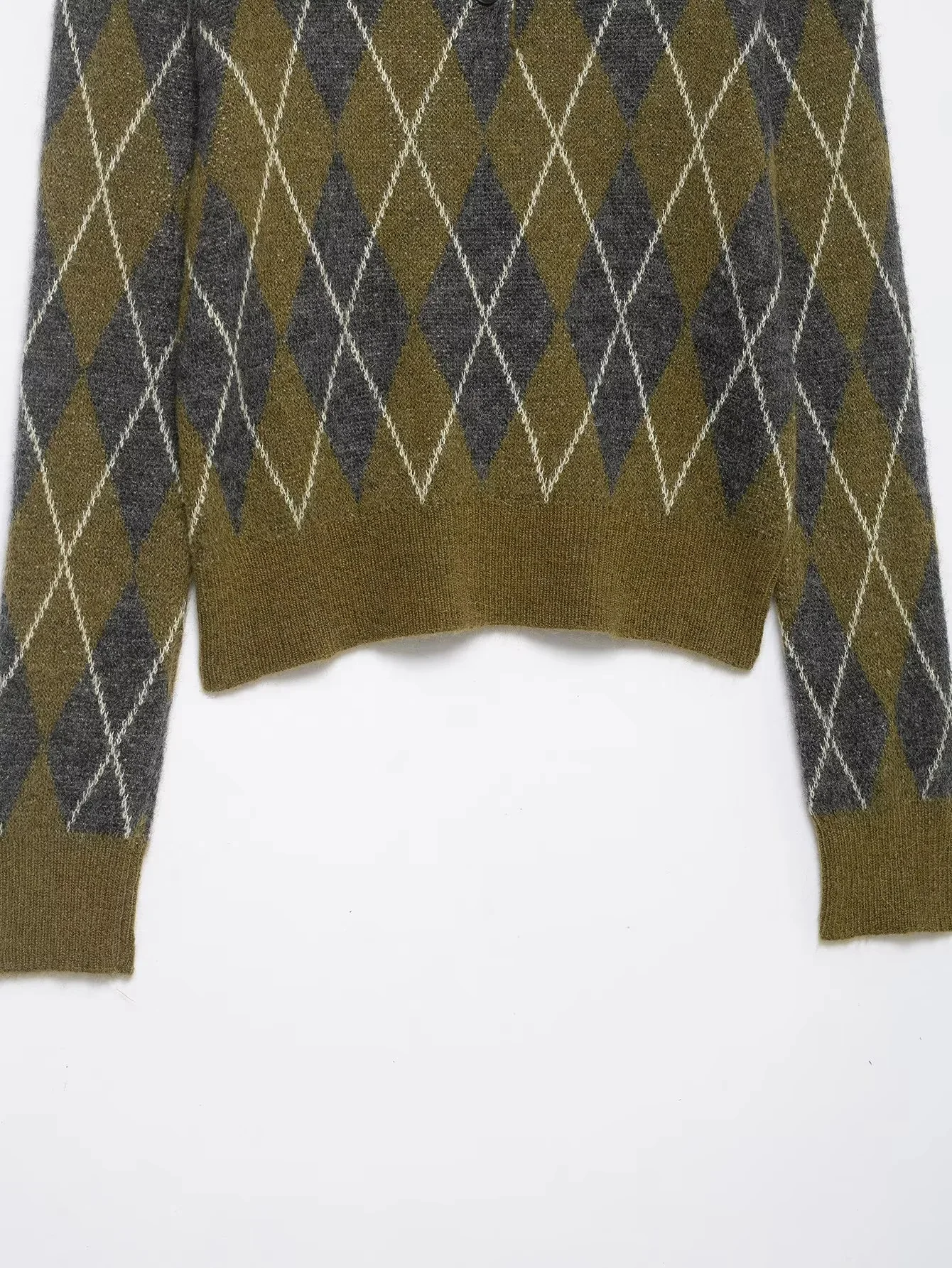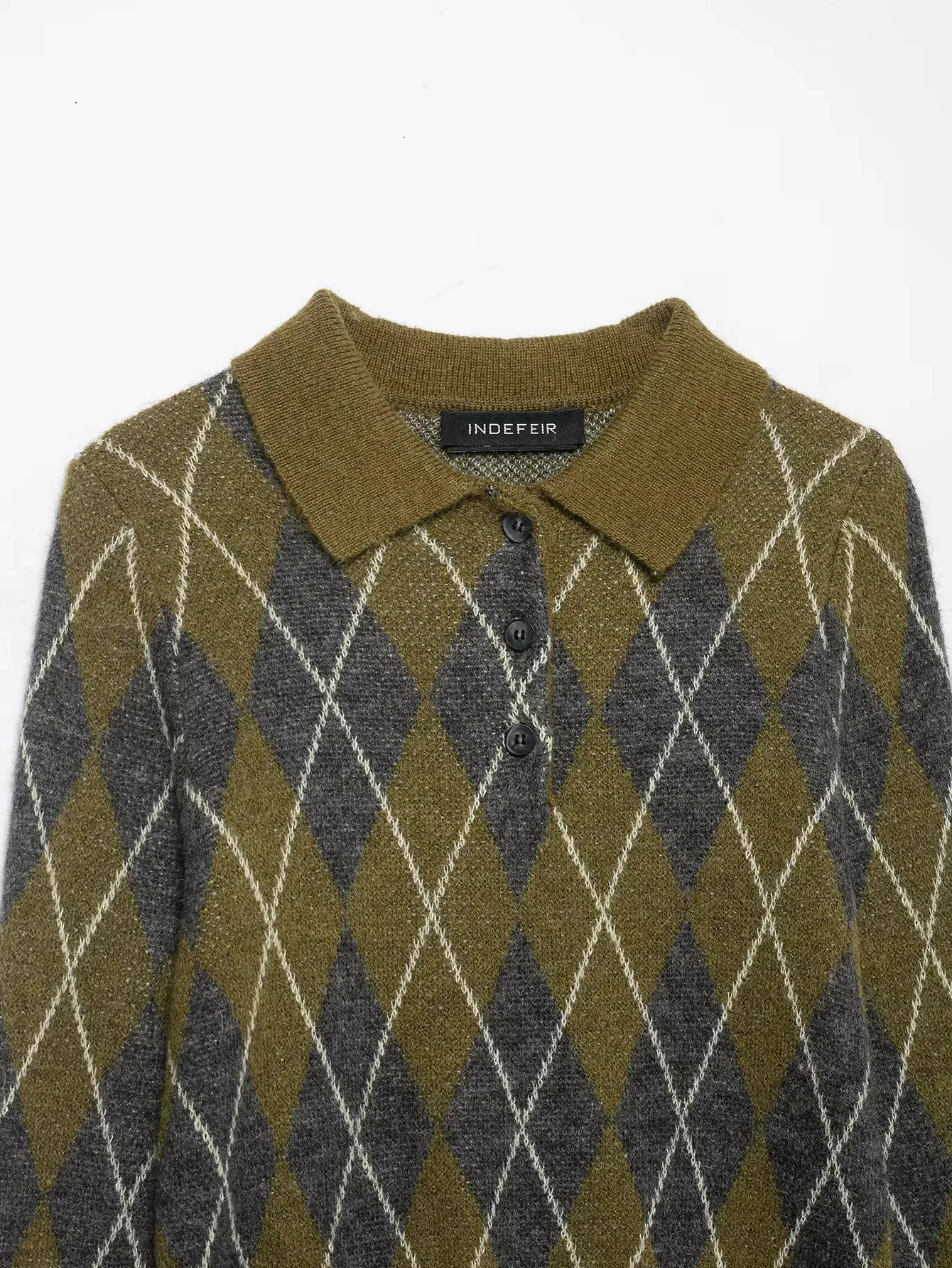 KONDALA 2025 Fall Winter Argyle Streetwear Knitted Women POLO Shirts Fashion Vintage Pullover Turndown Collar Ladies POLO Shirts