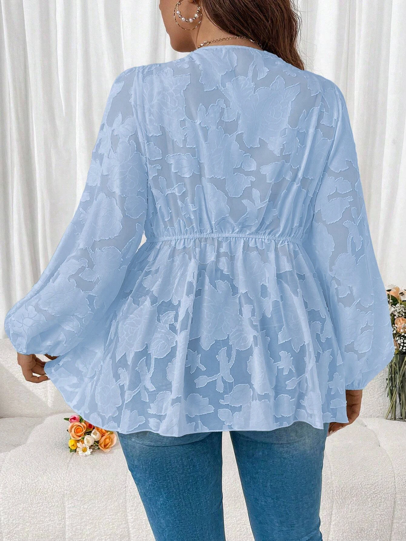 Featuring a sophisticated embossed cutout pattern, this blouse adds an elegant touch to any outfit.