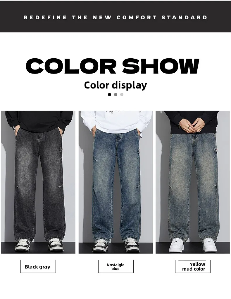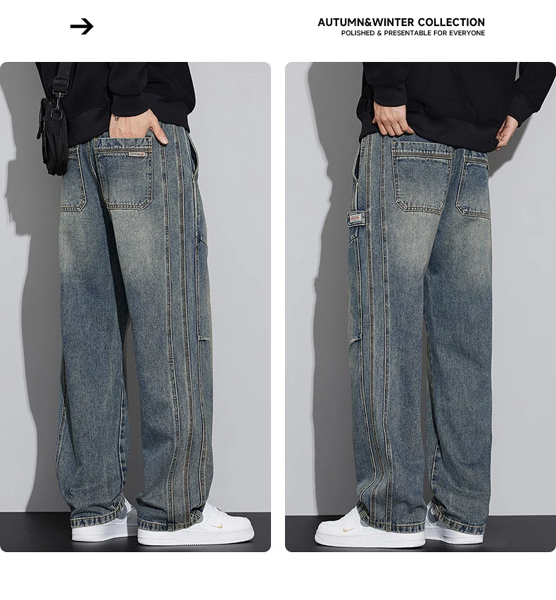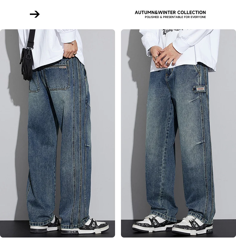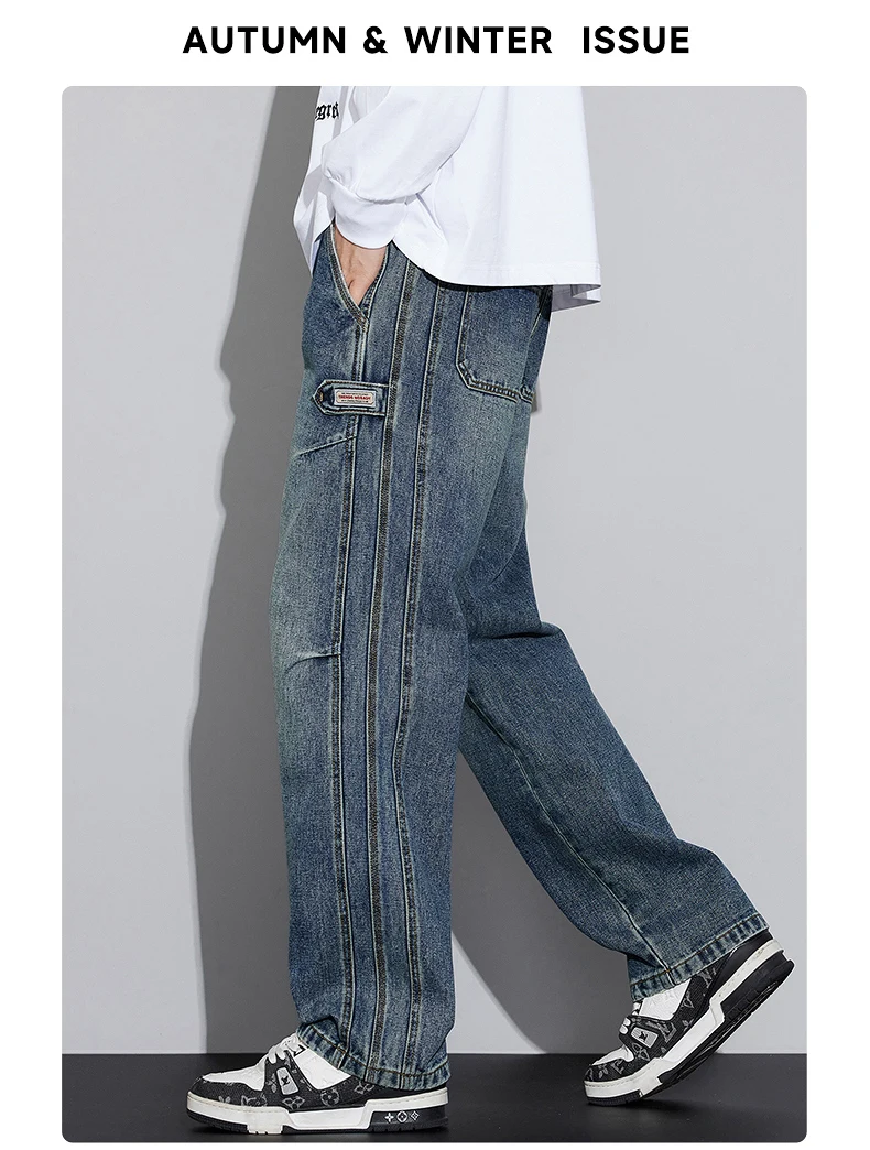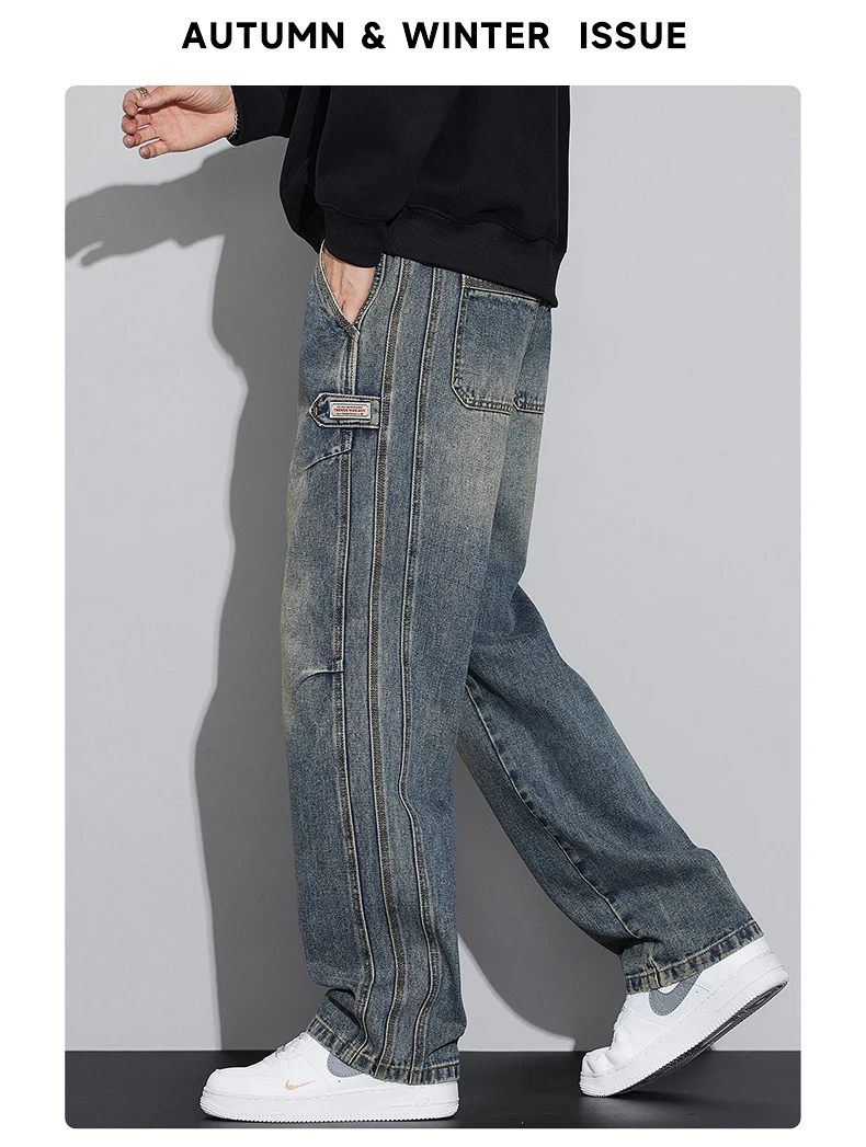 N Jeans Men 2025 New Fall and Winter Retro Fashion Brand Wash Loose Straight-leg Long Pants Men