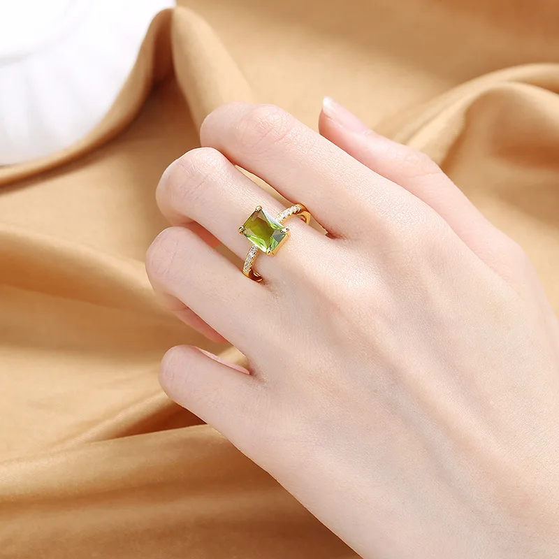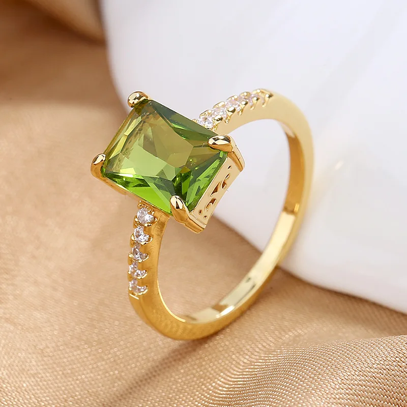 Princess Cut Olive Green Stone Square Rings For Women Antique Gold Color Geometric Zircon Wedding Bands Promise Engagement Ring