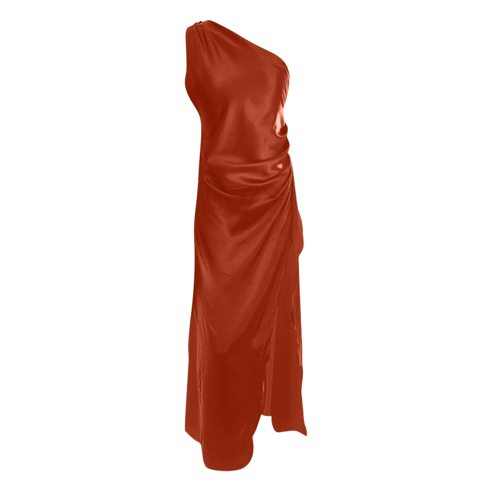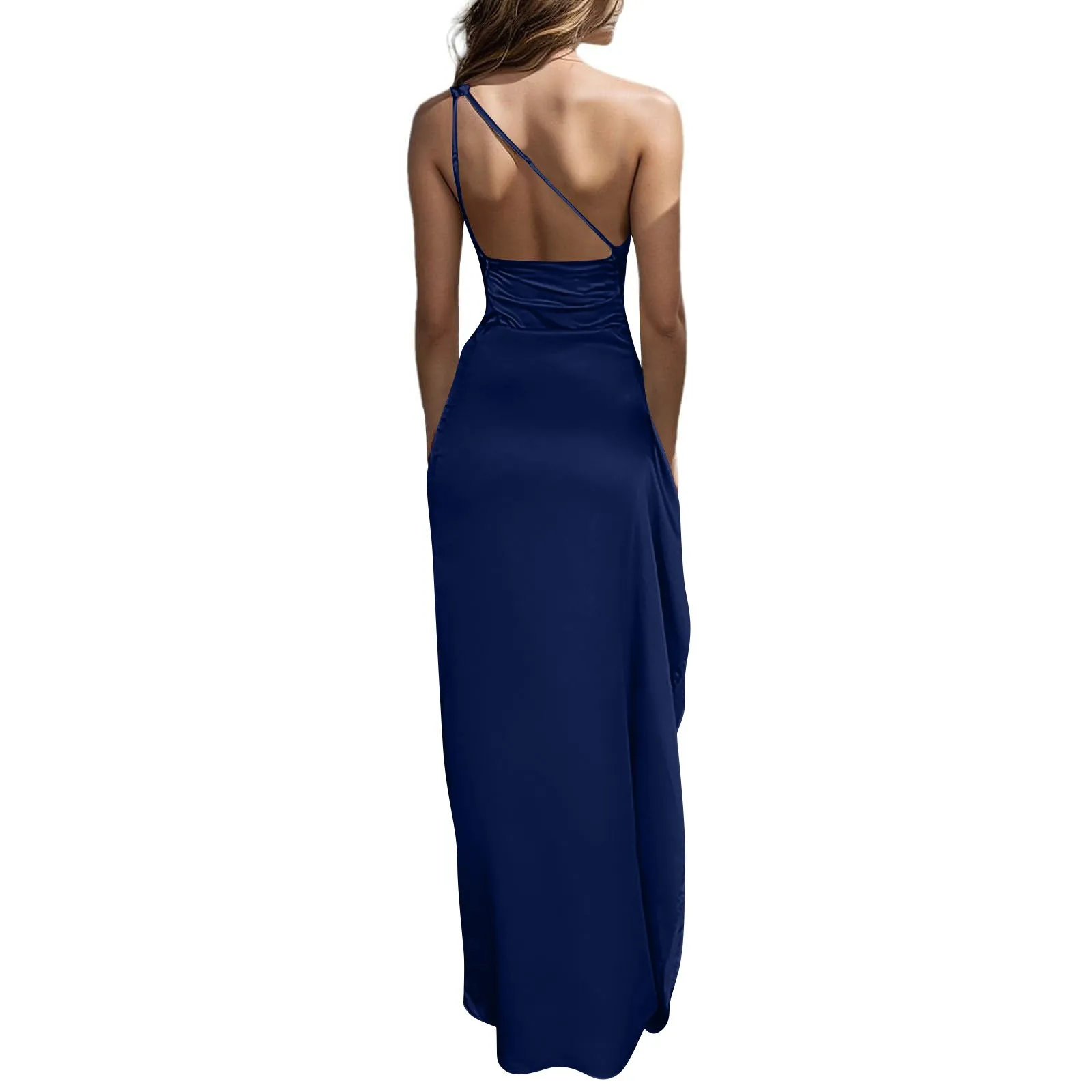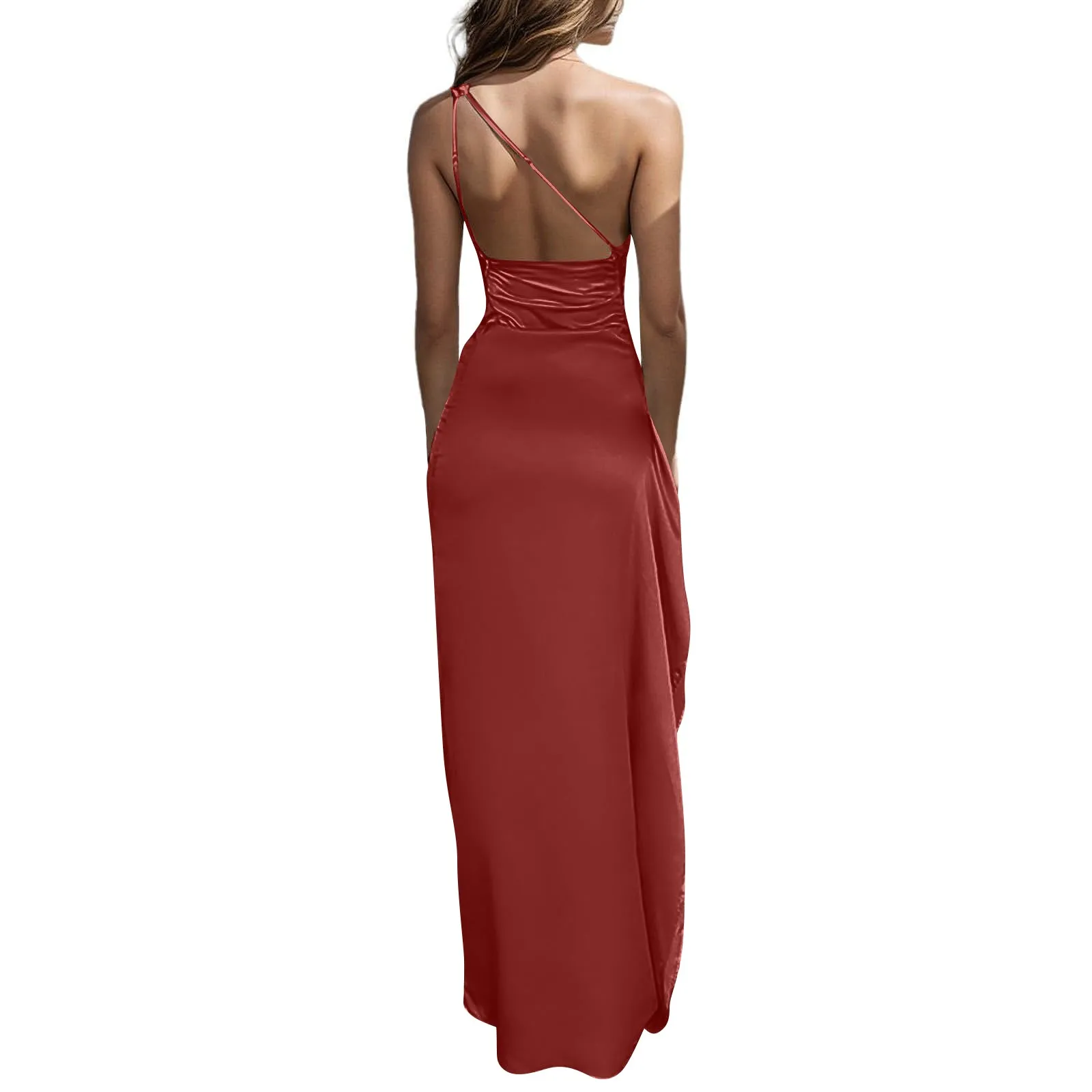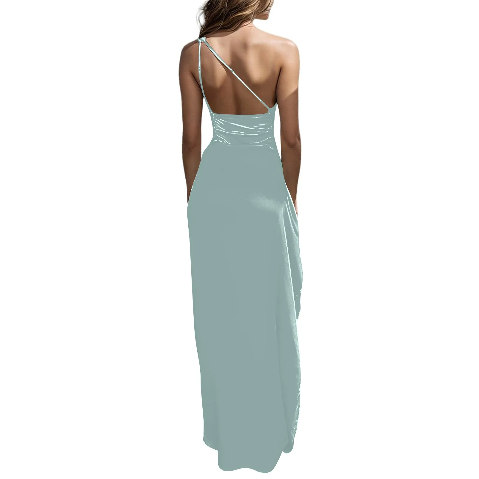 Women's Sexy One Shoulder High Split Cocktail Wedding Party Maxi Dress