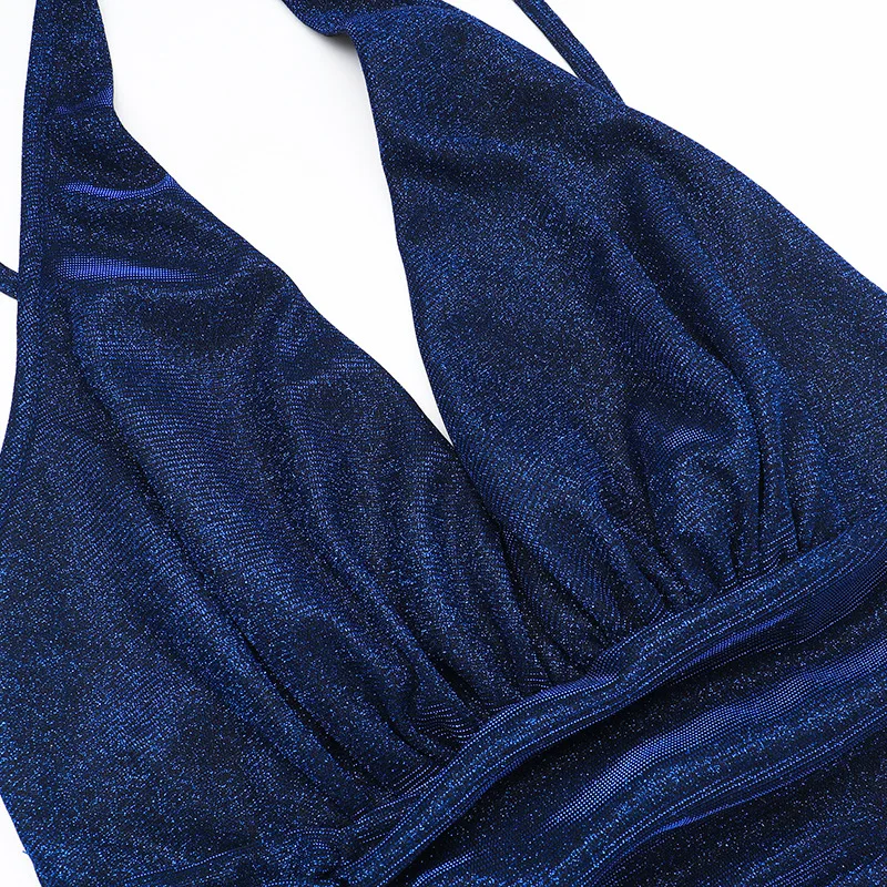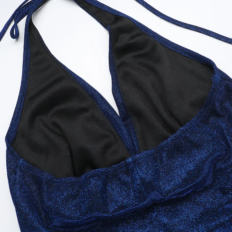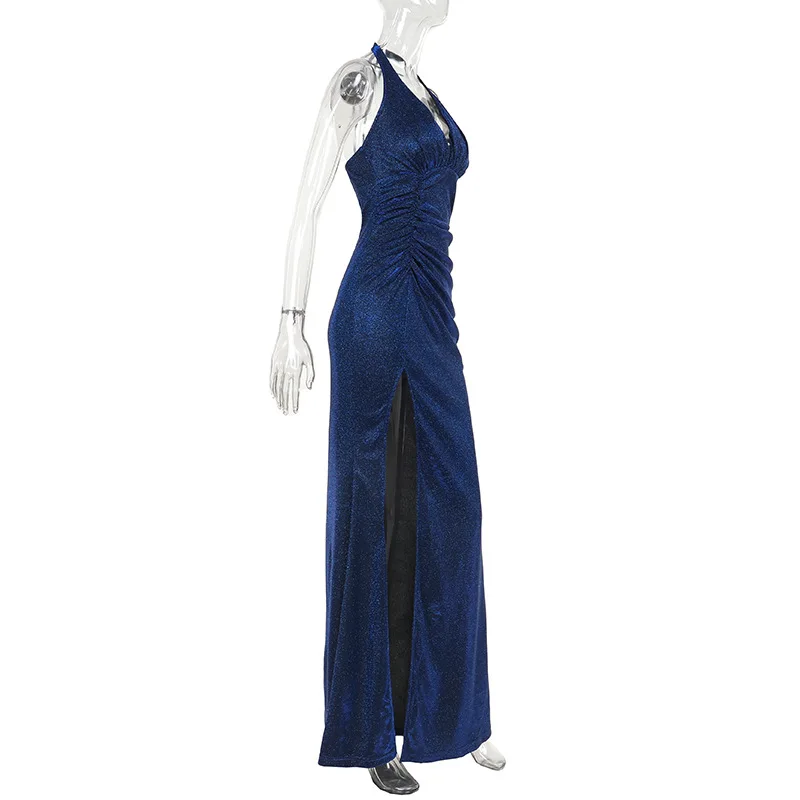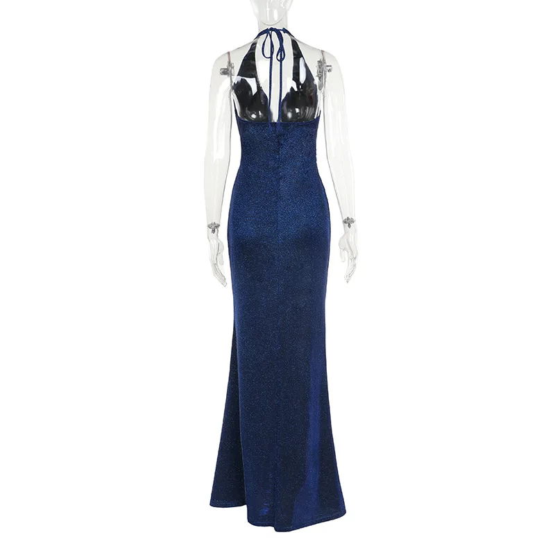 Sexy Halter Lace Up Backless Glitter Maxi Dress Women Elegant High Slit Evening Gown 2024 Summer Harajuku Fairy Core Clothes
