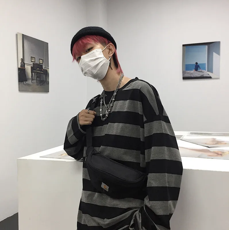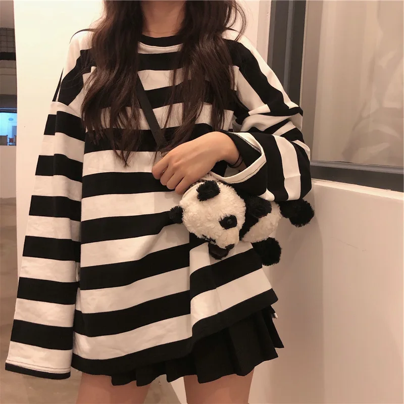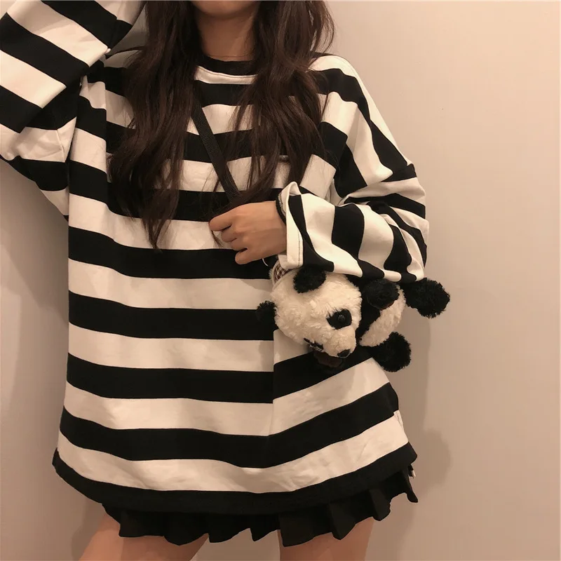 Striped T Shirt Women Casual Loose Long Sleeve Tops Female Streetwear Gothic Dark Shirts Spring Women T-shirt Vintage Blouse