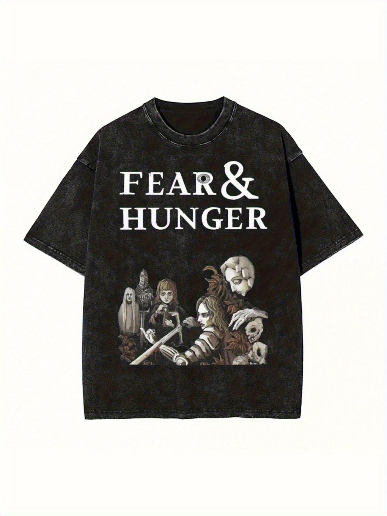 The "fear and Hunger" Impression Skull and Bone Vintage Cotton Shirt Washes Men and Women, All-season Casual Wear